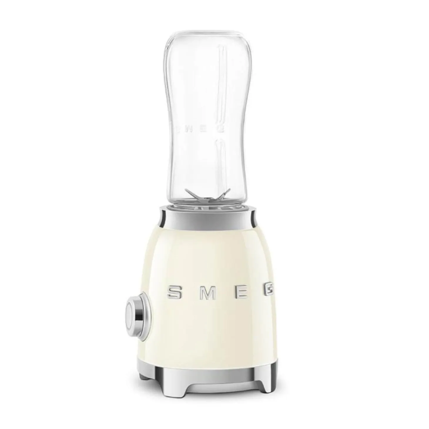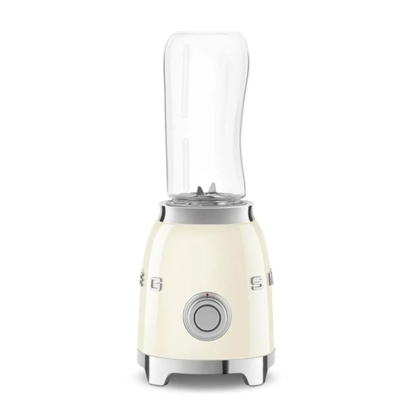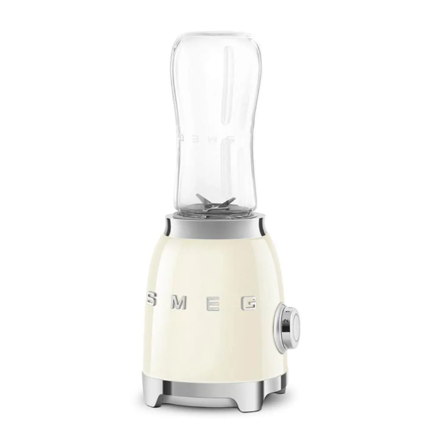 Enjoy fresh fruit or vegetable-based smoothies or milkshakes with this retro-style Smeg PBF01CRLUK Personal Blender in Cream. This great blender comes with two 600ml bottles-to-go, ideal for people that have a busy lifestyle. The 300W power output ensures the blades will blend through your choice of fruit and vegetables with ease providing a smooth mixture after use. An excellent personal blender that would make a wonderful gift or a treat for yourself.