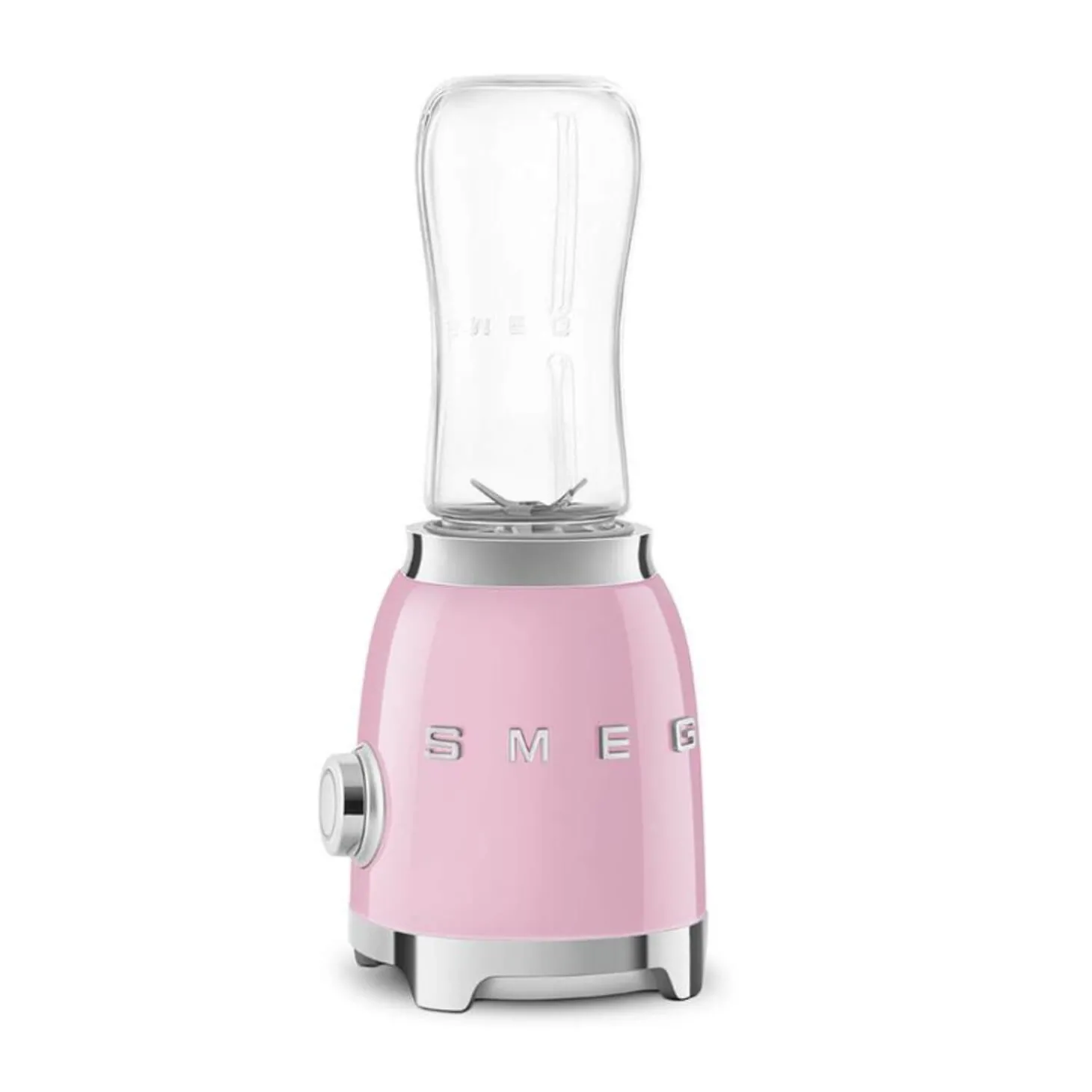 Enjoy fresh fruit or vegetable-based smoothies or milkshakes with this retro-style Smeg PBF01PKUK Personal Blender in Pink. This great blender comes with two 600ml bottles-to-go, ideal for people that have a busy lifestyle. The 300W power output ensures the blades will blend through your choice of fruit and vegetables with ease providing a smooth mixture after use. An excellent personal blender that would make a wonderful gift or a treat for yourself.