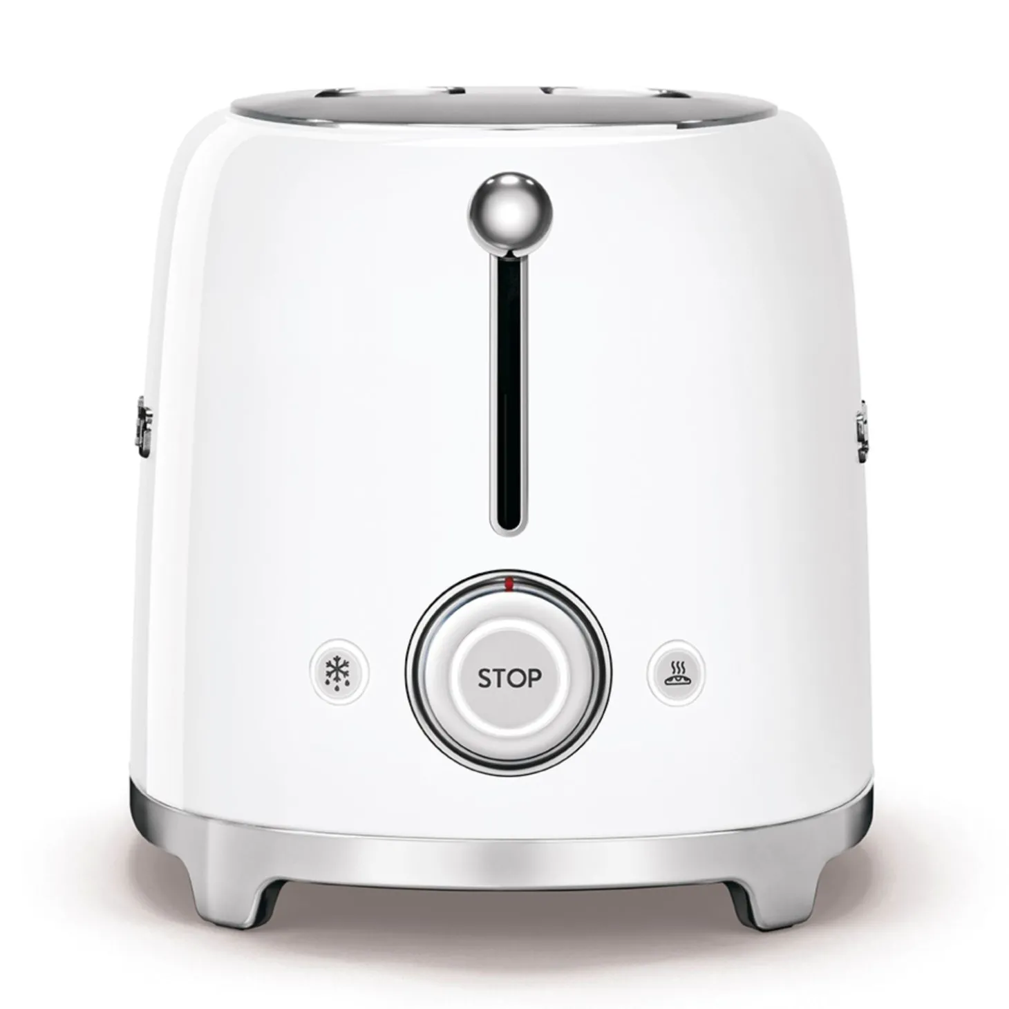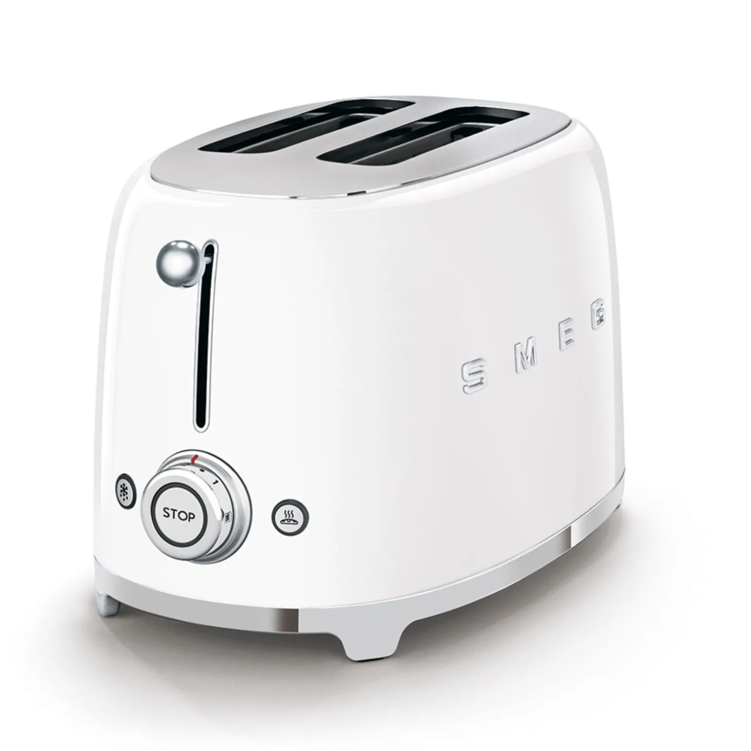 The Smeg 2 slice toaster is both stylish and practical combining 1950’s design with modern technology. This toaster features a 950W motor to ensure optimum browning whilst keeping the middle soft, the slots on the toaster are self-centring and there are a variety of features including defrost reheat and bagel.