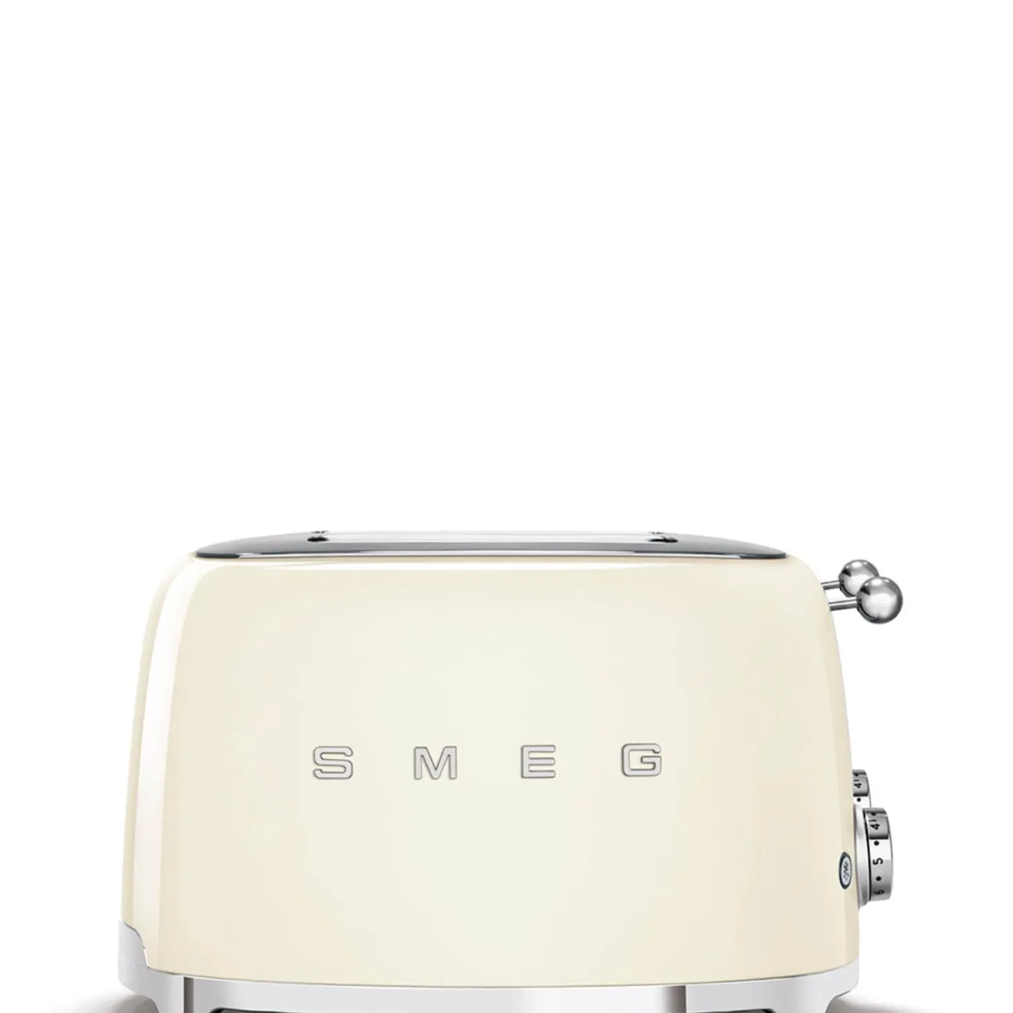Toast a variety of bread with the Smeg 4 slice retro toaster in cream. Sporting a classic 1950’s Americana design with its seamless curved edges, stylish silver accents and raised SMEG logo; this retro shape toaster makes a true style statement in any kitchen.