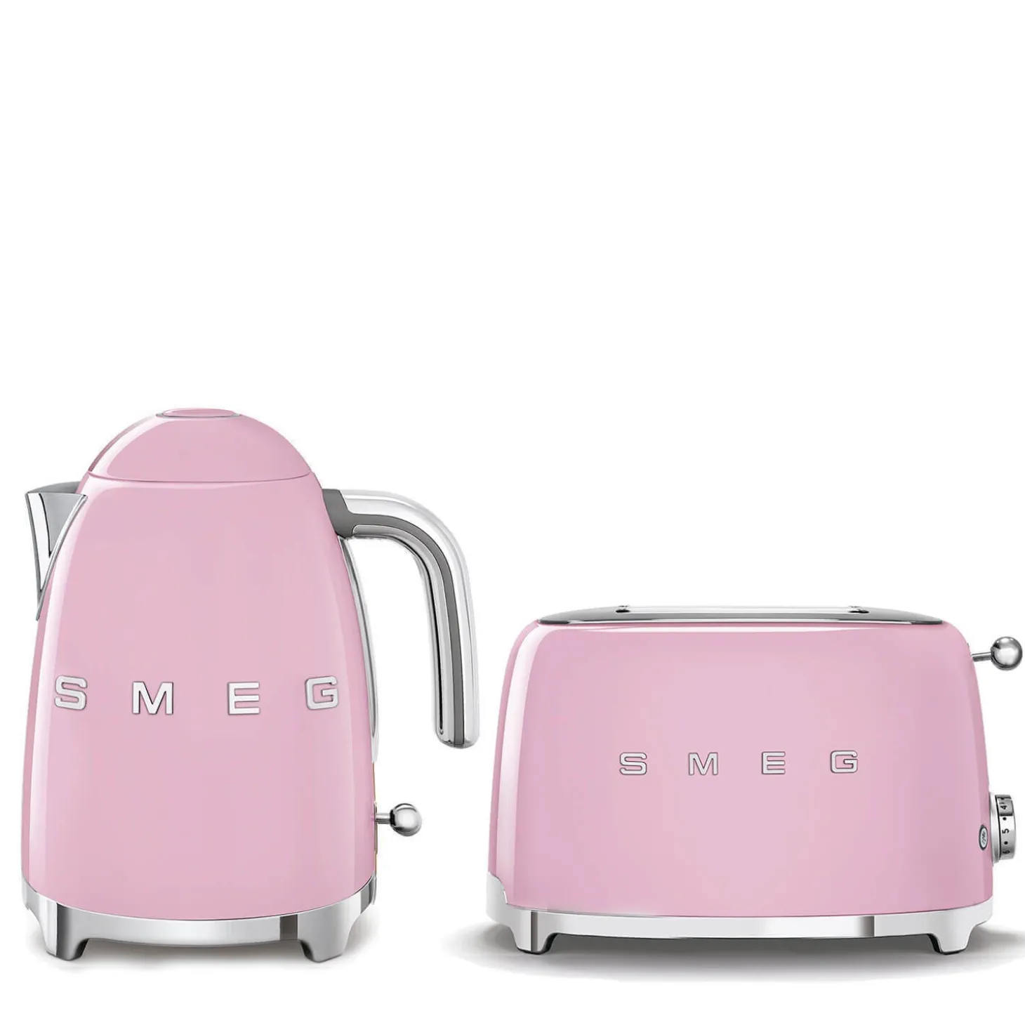 Each item in the Smeg Pink 1.7-litre jug kettle and 2 slice toaster set features a retro 50’s style exterior with a stylish on-trend gloss finish with silver accents and a unique raised 3D logo. This set includes a two-year guarantee and is also available individually.