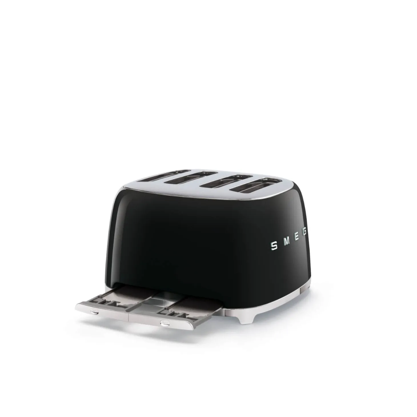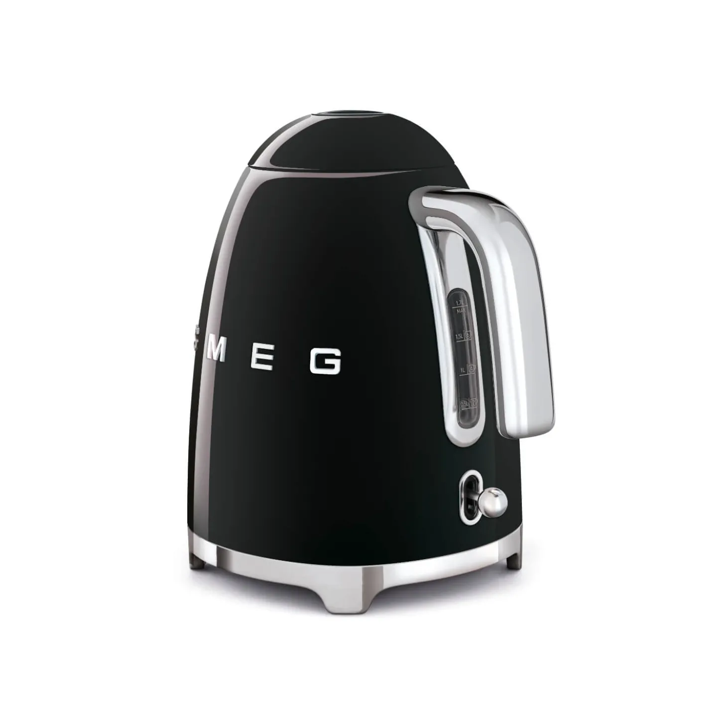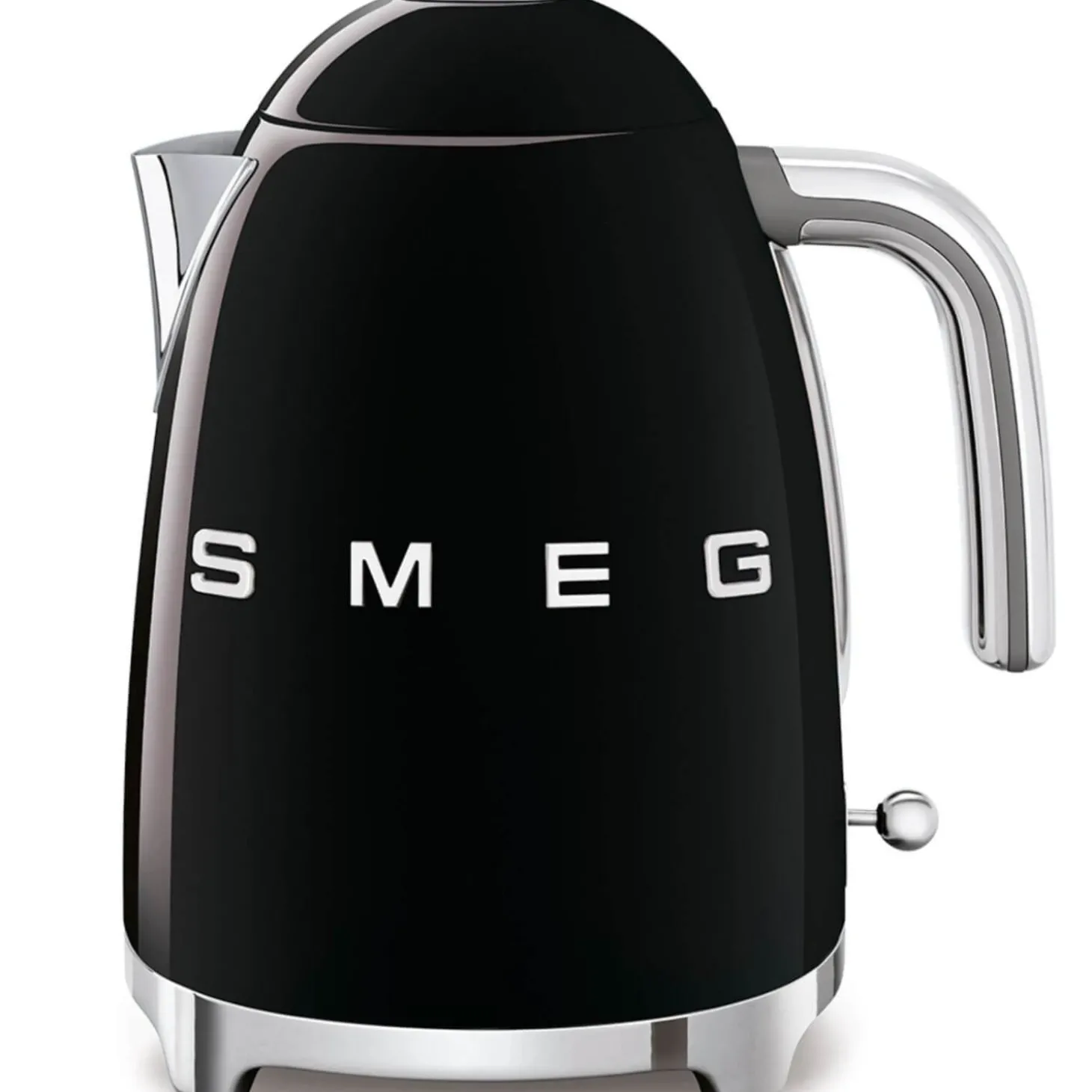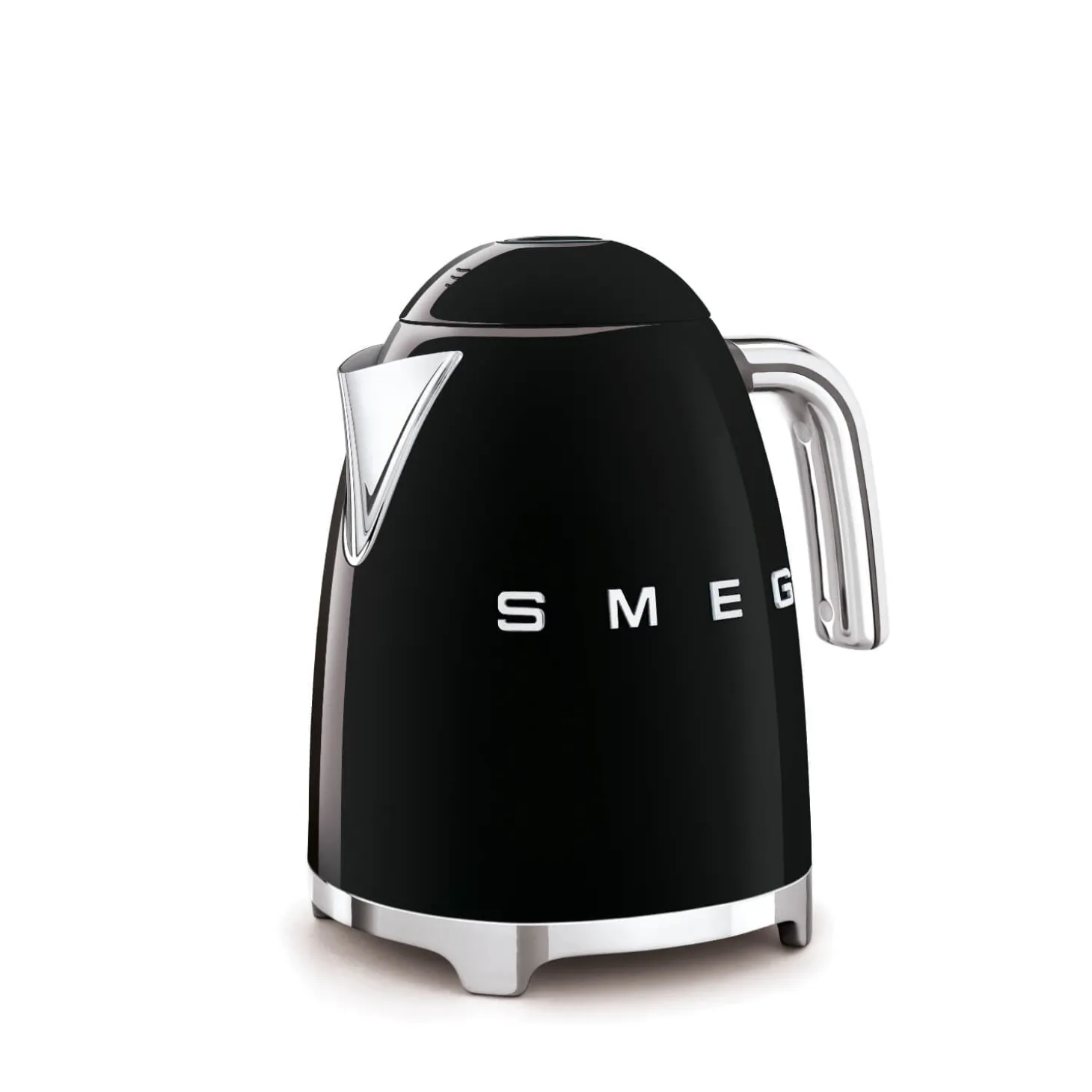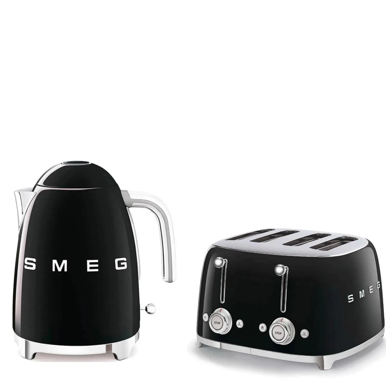 Each item in the Smeg Black 1.7-litre jug kettle and 4 slice toaster set features a retro 50’s style exterior with a stylish on-trend black gloss finish with silver accents and a unique raised 3D logo. This set includes a two-year guarantee and is also available individually.