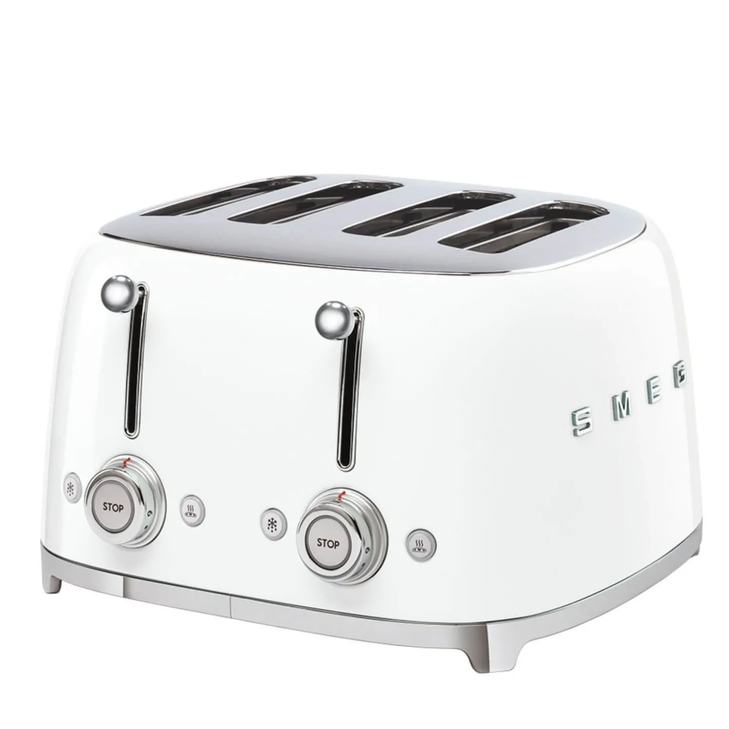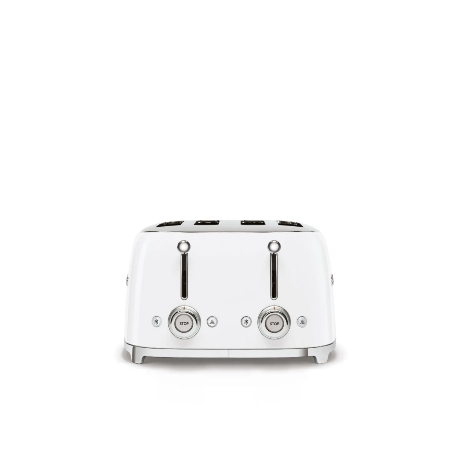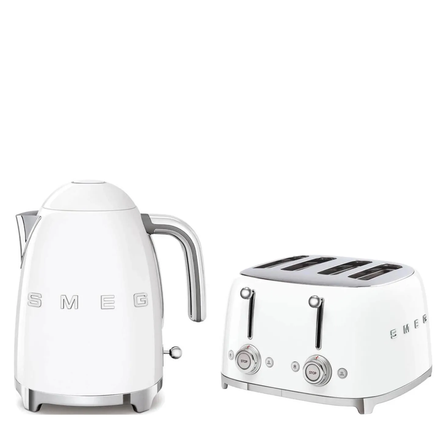 Each item in the Smeg White 1.7-litre kettle and 4 slice toaster set features a retro 50’s style exterior with a stylish on-trend white gloss finish with silver accents and a unique raised 3D logo. This set includes a two-year guarantee and is also available individually.