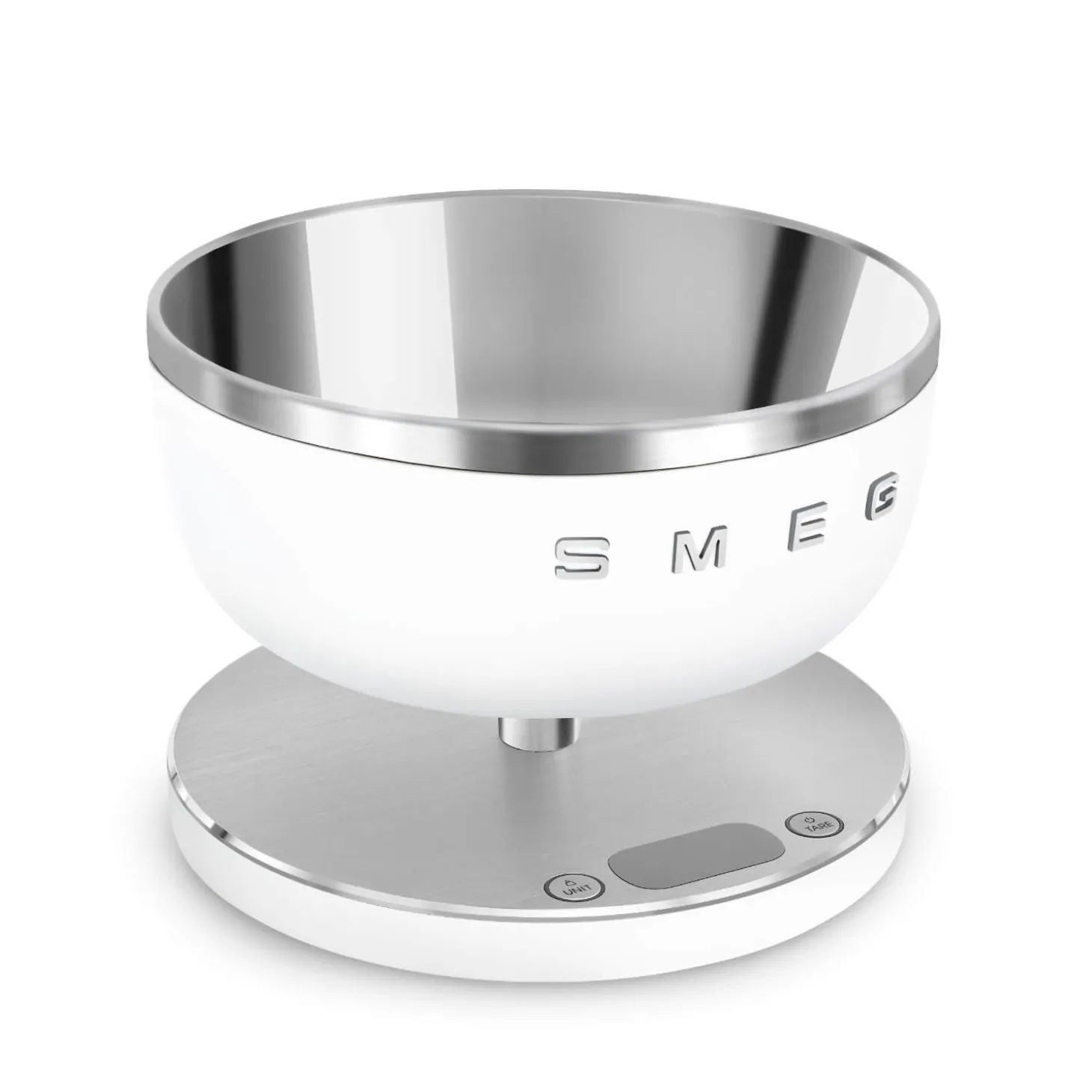 Smeg presents the KSC01 Digital Kitchen Scales in White. Featuring a contemporary design, these scales have a stylish matte finish complemented by a striking brushed aluminum panel. The clear digital LED screen and aluminum buttons ensure quick and precise readings. The scales also include a tare function, which allows you to reset the weight of the bowl, making it easy to weigh multiple ingredients without starting over. These scales are a fantastic addition that will enhance any kitchen style.