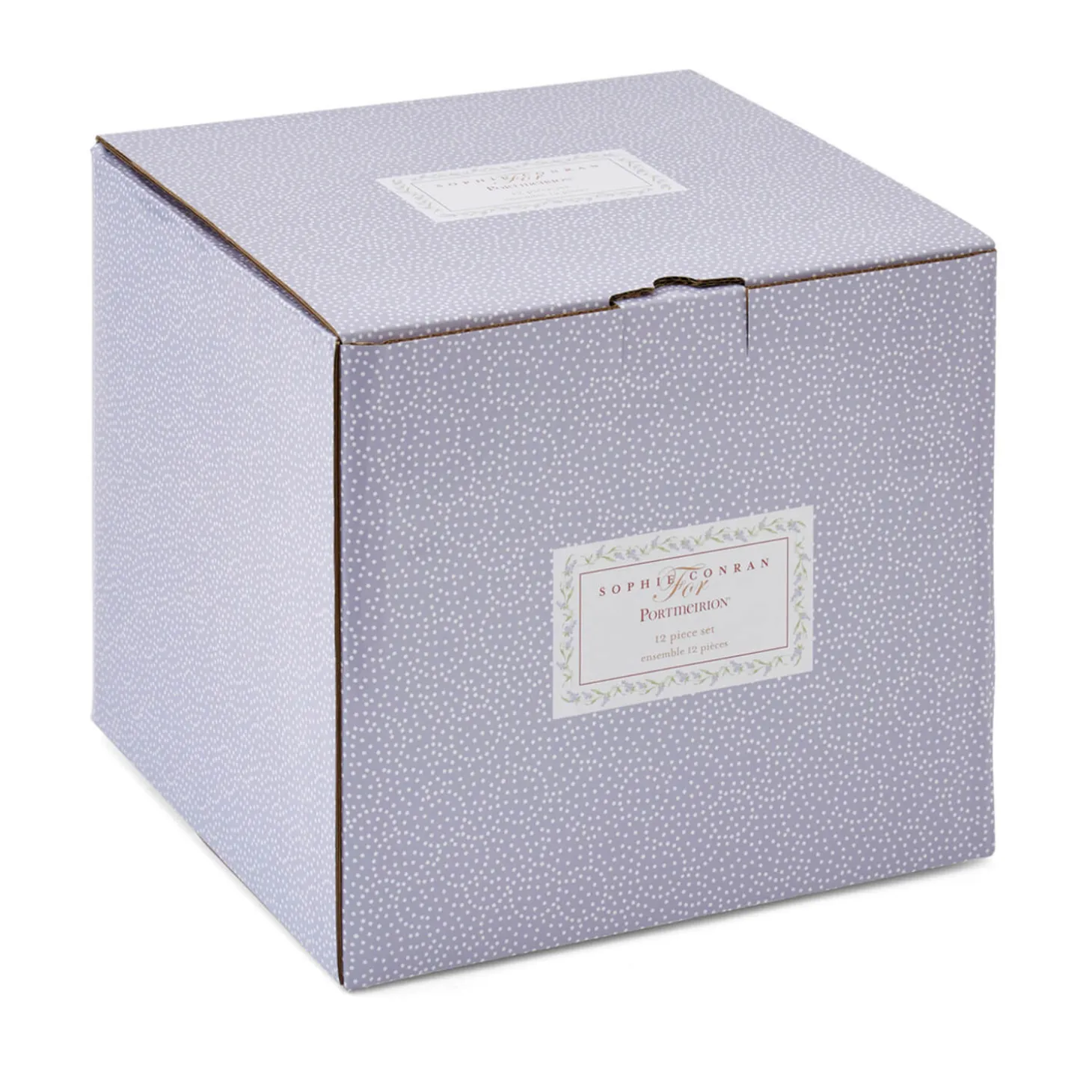 Sophie Conran presents the 12-Piece Dinner Set, produced by Portmeirion as part of her porcelain ‘Lavandula’ collection. This stunning design showcases the intricate beauty of delicate lavender flowers and foliage. Its charming elegance, featuring the unique Sophie Conran ripple effect, is sure to captivate your senses and create a tranquil atmosphere for your fine dining experience. This beautiful dinner set would make a wonderful gift or a treat for yourself.