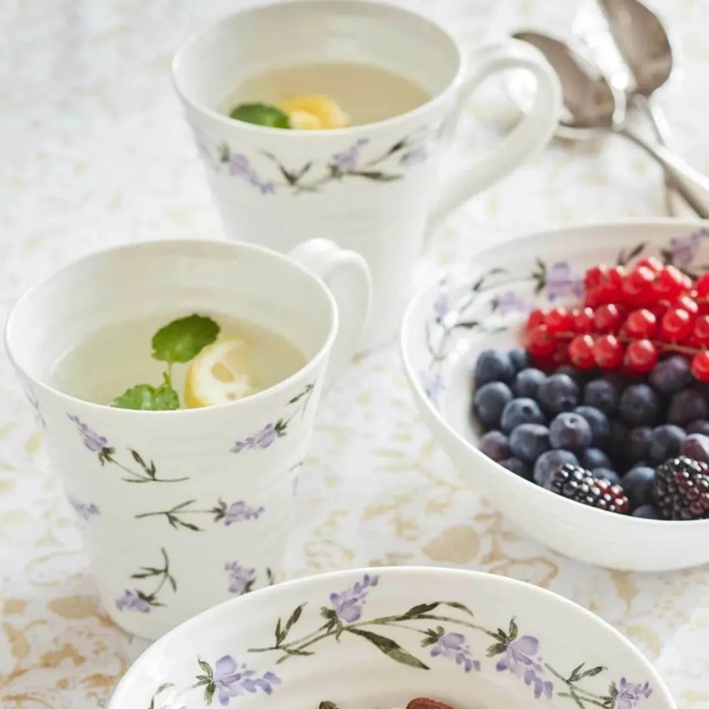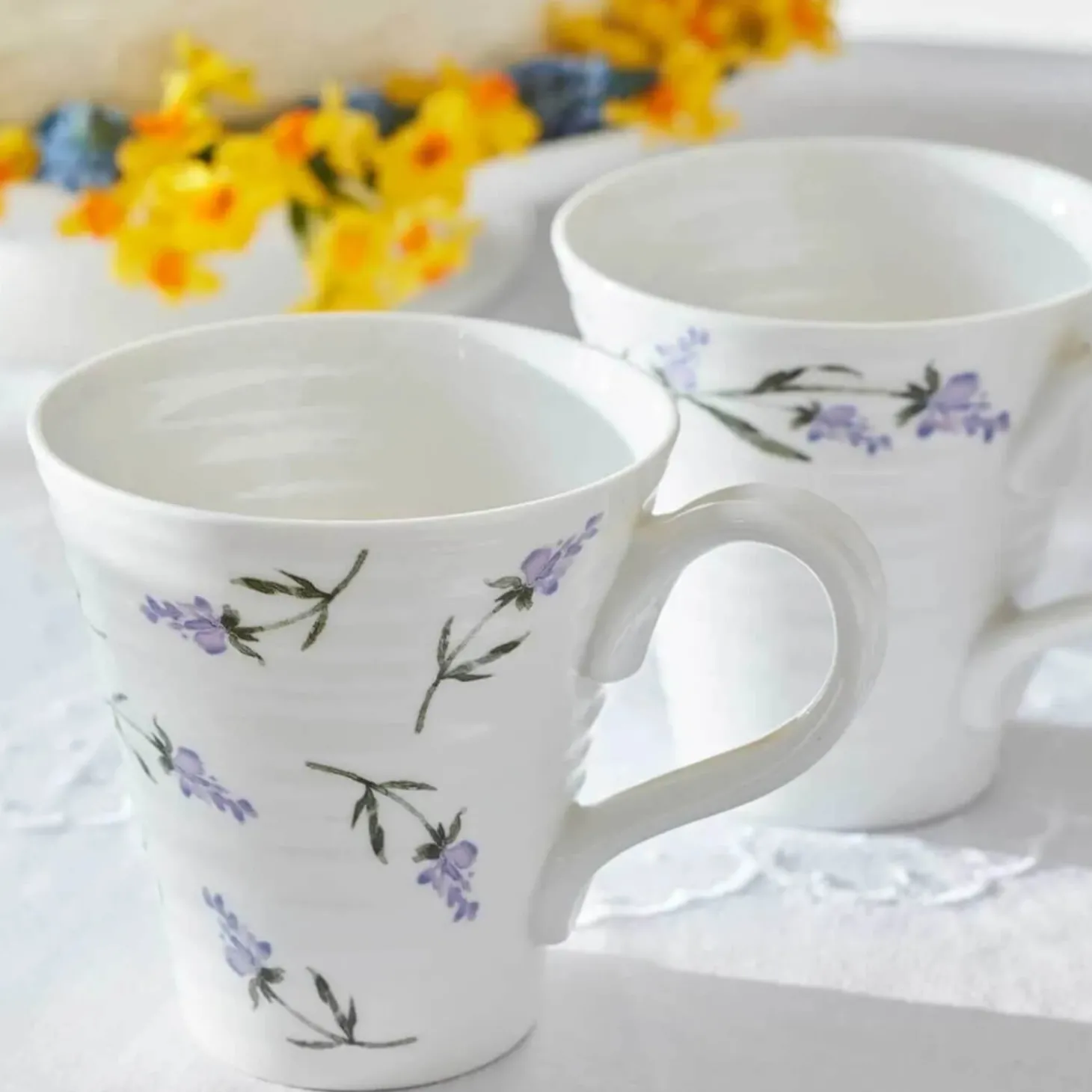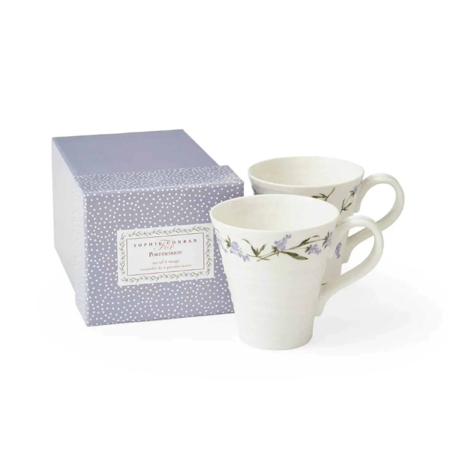 Sophie Conran presents the Set of 2 Mugs, produced by Portmeirion as part of her porcelain ‘Lavandula’ collection. This stunning design showcases the intricate beauty of delicate lavender flowers and foliage. Its charming elegance, featuring the unique Sophie Conran ripple effect, is sure to captivate your senses and create a tranquil atmosphere for your morning coffee or afternoon tea. These beautiful mugs would make a wonderful gift or a treat for yourself.