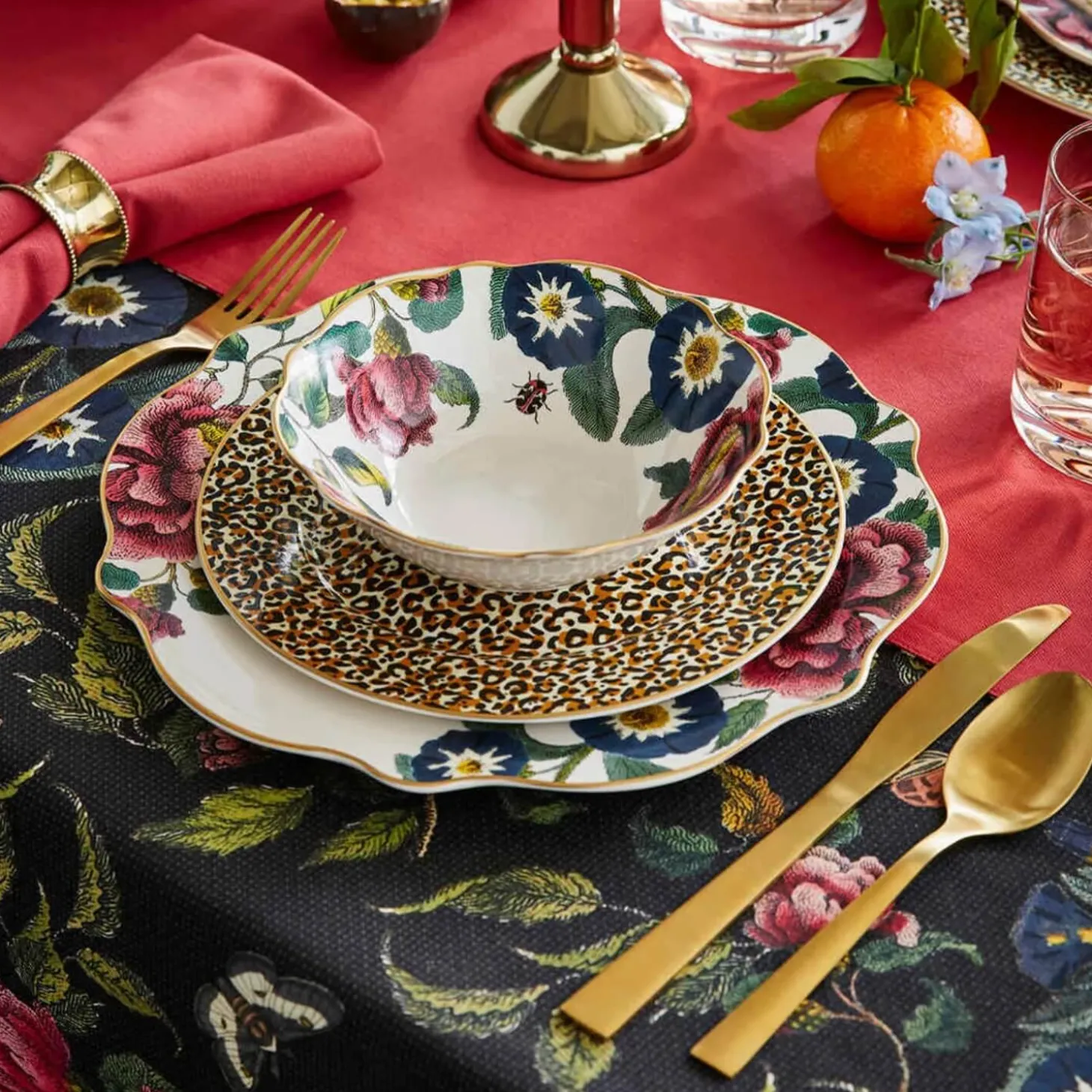 - Bold, striking design of flowers, butterflies and leopard print