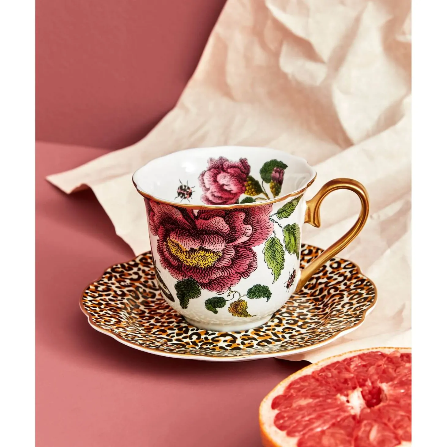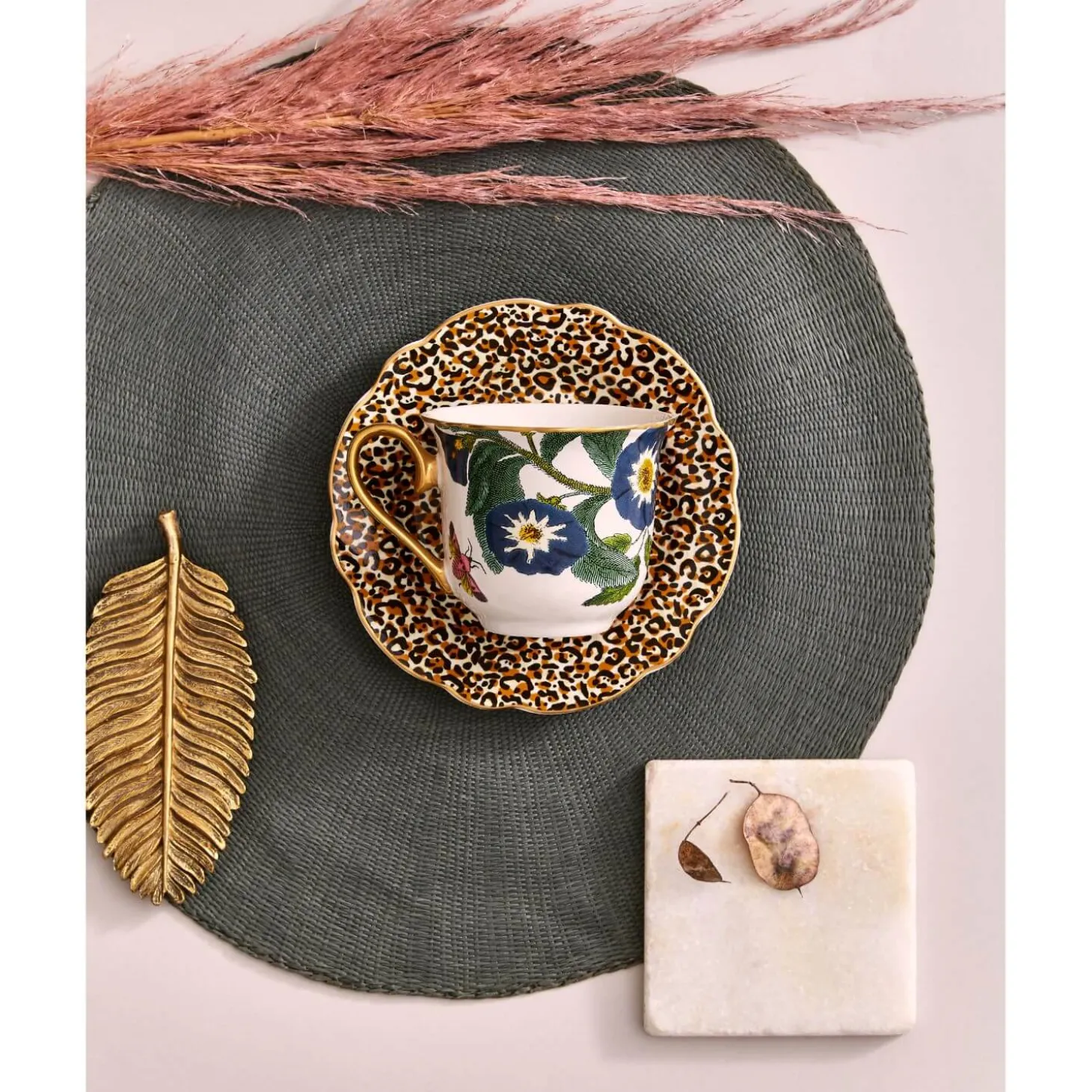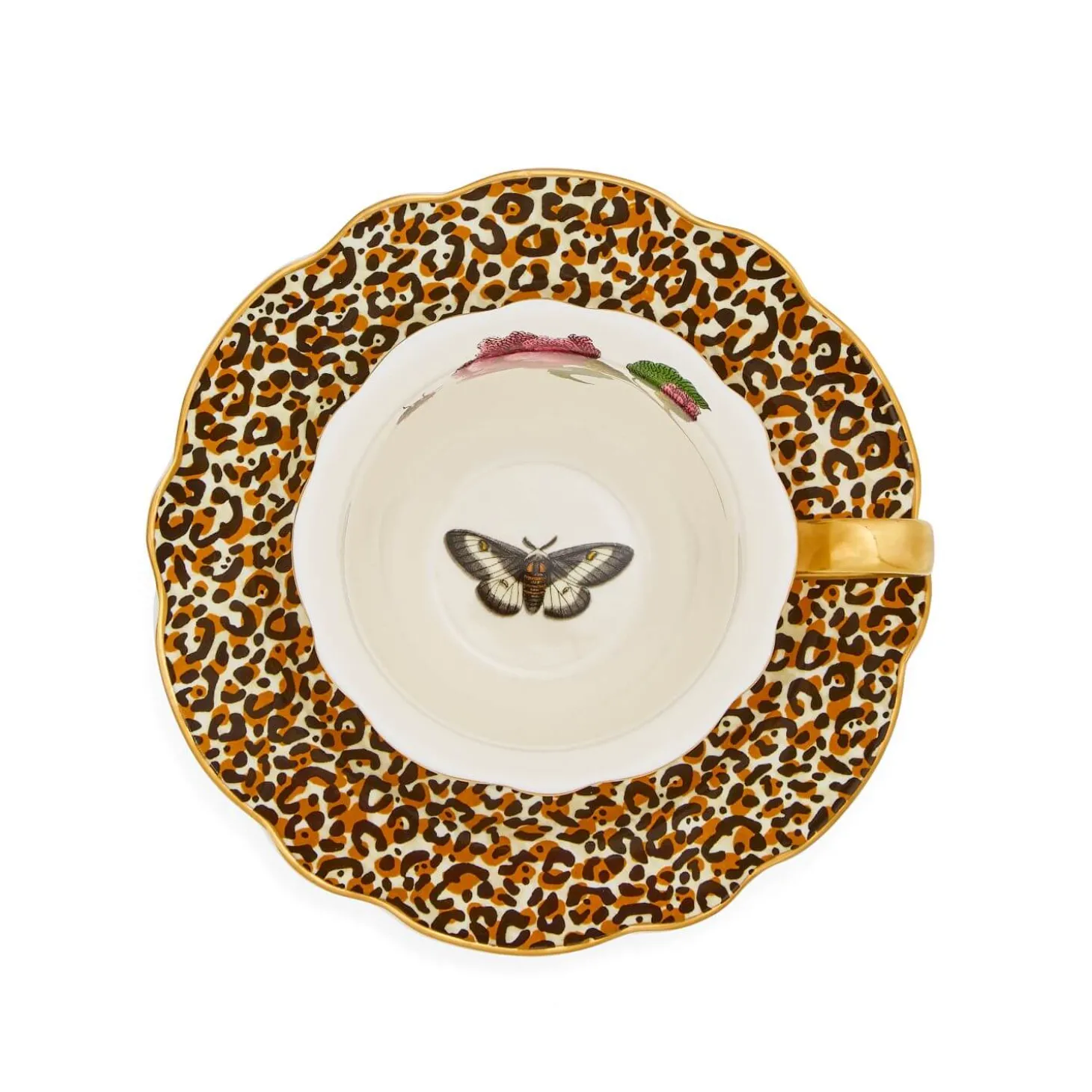 - Leopard Print / White Floral Fluted Tea Cup & Saucer