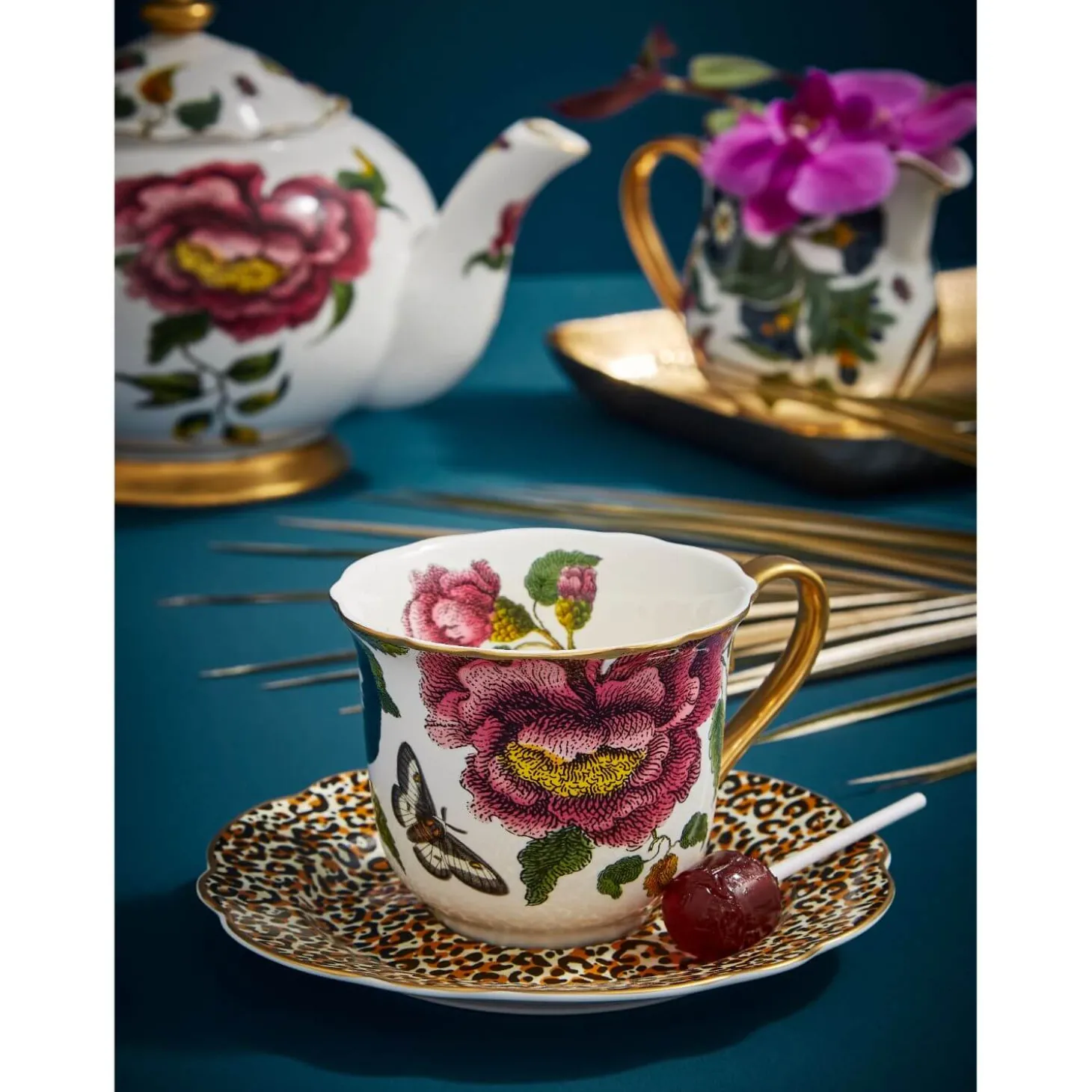 Designed by Spode and produced by Portmeirion is this beautiful Fluted Tea Cup & Saucer being part of Spodes Creatures of Curiosity range. The tea cup is white floral and has a 22-carat gold handle, floral designs on the interior with a complementing leopard print saucer with 22-carat gold detailing. This striking tea cup and saucer will certainly make a statement on your table for an afternoon tea. There are other beautiful complementing products available in the Creatures of Curiosity range. This boldly decorated Spode Tea Cup & Saucer would make a wonderful gift or a treat for yourself.