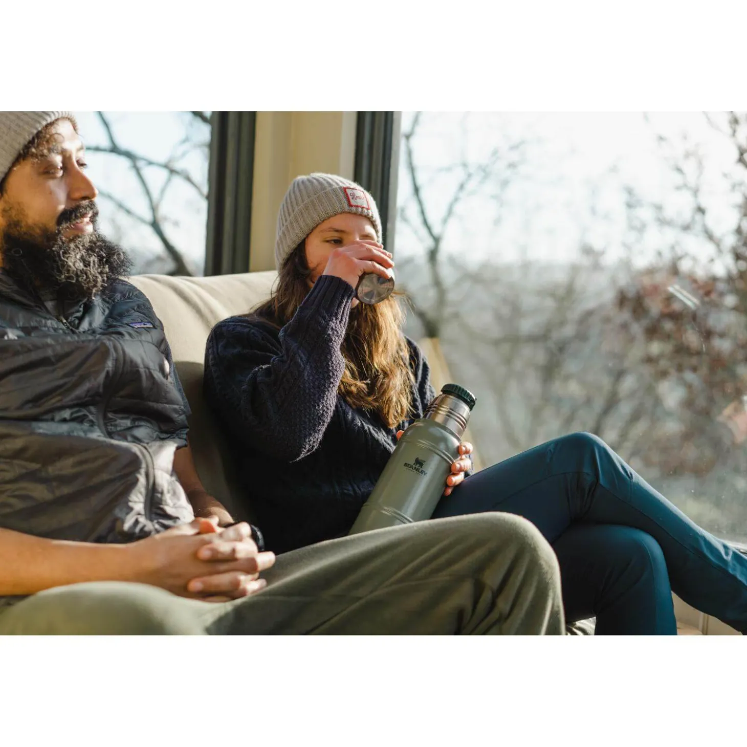 Stanley presents the 1 Litre Thermal Bottle in Hammertone Green as part of their ‘The Artisan’ collection. This thermal bottle is crafted from recycled stainless steel with 4D Thermology tech for superior insulation that keeps the contents hot for 35 hours and cold for up to an amazing 37 hours or iced for up to 5 days! Ideal for all your outdoor adventures!