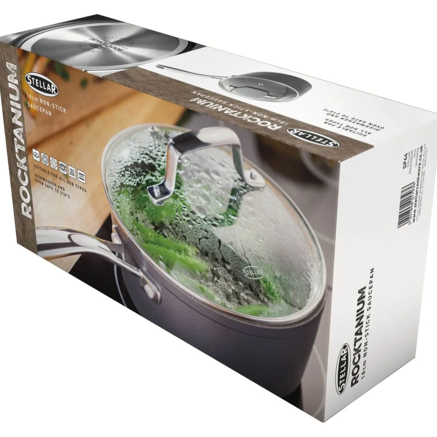 The Rocktanium 18cm saucepan from Stellar has been designed to provide superior performance on all hob types thanks to an induction base ensuring even heat distribution, this saucepan also features QuanTanium non-stick coating which ensures easy food release, cleaning and scratch-resistant benefits.
