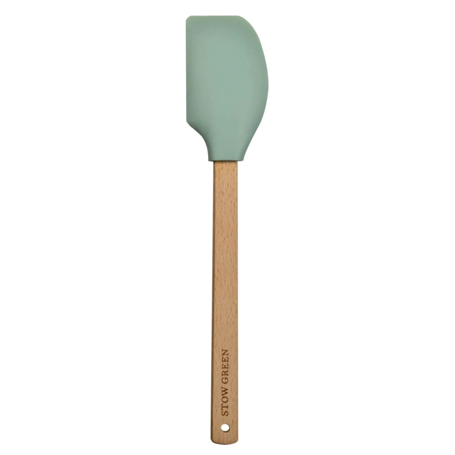 Stow Green presents this versatile silicone spatula with a beech wood handle in sage green. Each item in the collection features a heat-resistant, food-safe silicone head which shows imperial and metric conversions on one side, whilst also being suitable for use on non-stick pots and pans. The spatular is ideal for mixing, stirring and turning ingredients and perfectly complements other items in the collection.