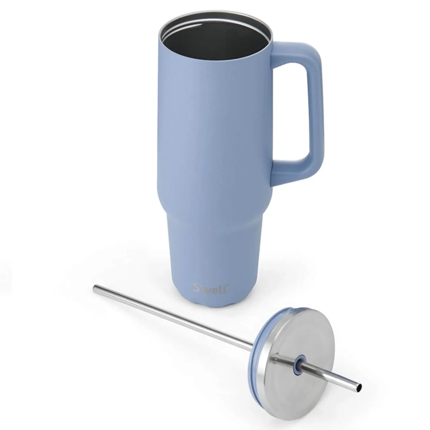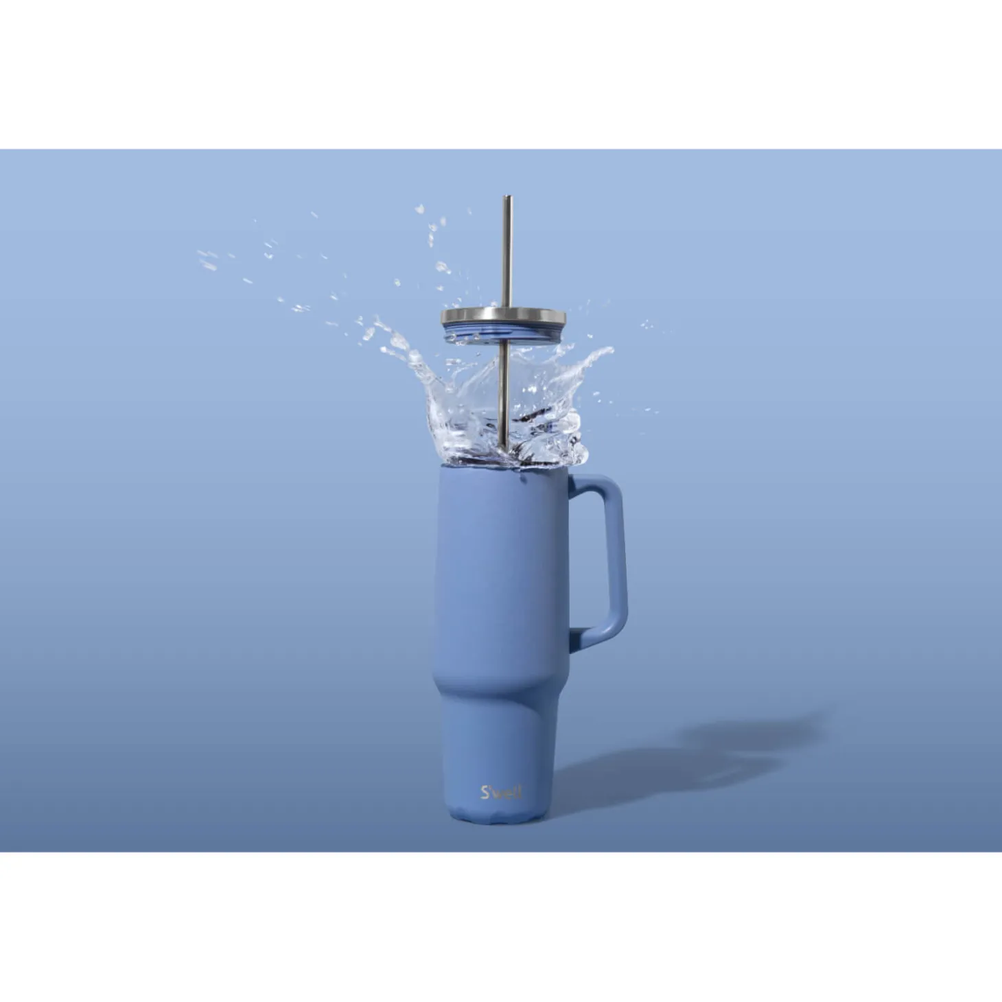 S’well presents the 1.18L XL Travel Tumbler in Hydrangea Blue. Featuring Therma-S’well® Technology with triple-layered, vacuum-insulated construction and condensation-free exterior, this large hydration bottle keeps your favourite drinks cold for an amazing 50 hours and hot drinks for an impressive 10 hours. The tumbler also comes with a tight-fitting stainless steel straw, making it easy to sip spill-free whether you’re at home or on the go!