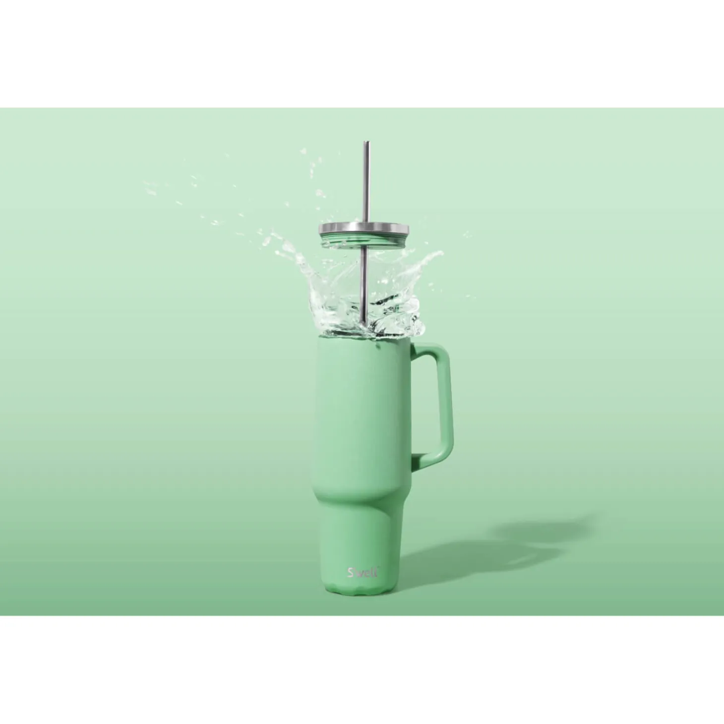 S’well presents the 1.18L XL Travel Tumbler in Pistachio. Featuring Therma-S’well® Technology with triple-layered, vacuum-insulated construction and condensation-free exterior, this large hydration bottle keeps your favourite drinks cold for an amazing 50 hours and hot drinks for an impressive 10 hours. The tumbler also comes with a tight-fitting stainless steel straw, making it easy to sip spill-free whether you’re at home or on the go!