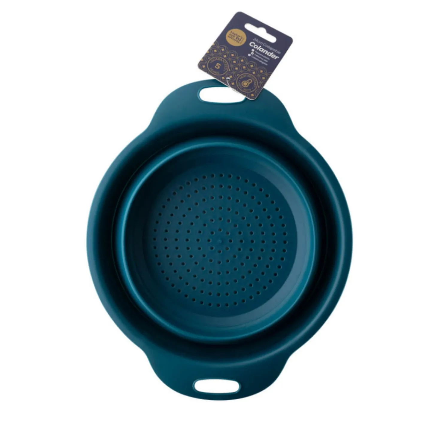 Taylor’s Eye Witness presents this 20cm Collapsible Colander in Chatsworth Blue. Ideal for washing and straining vegetables, pasta and much more. Created from rubber plastic, which is designed to fit perfectly in a kitchen drawer or cupboard. Make light work of everyday tasks whilst also keeping your hands and fingers safe from hot water. Ideal design colander to take in a caravan or camping.