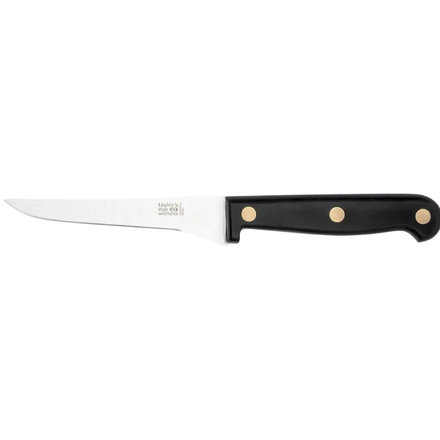 This traditional style 13cm boning knife forms part of the Heritage range by Taylor’s Eye Witness. The long, slightly flexible blade makes it an ideal choice for removing bones from fish and working around tissue and tendons. Each kitchen knife in the collection features a full tang blade, created from a single piece of high carbon stainless steel that is precision ground for excellent sharpness and secured using three brass rivets.