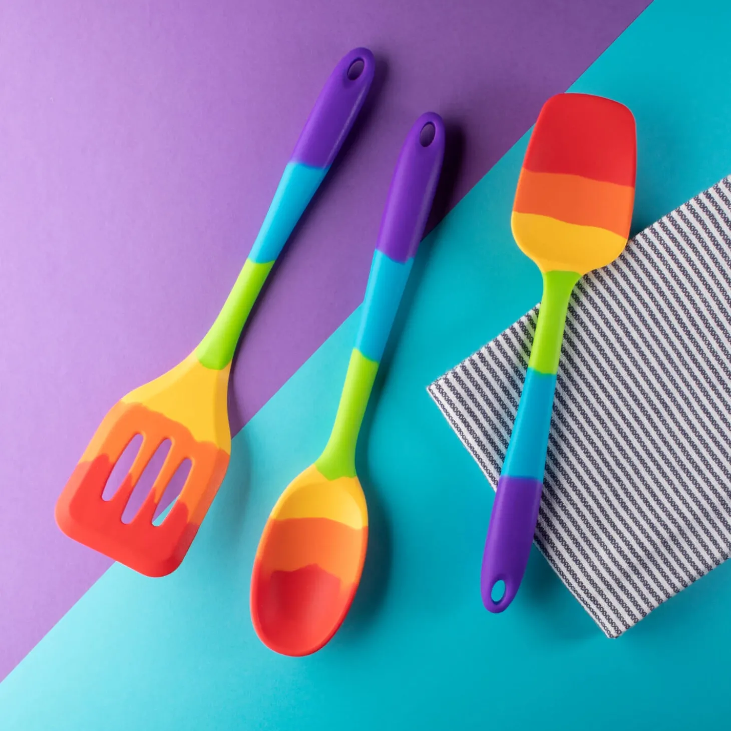- Mini silicone spoon with a rainbow themeÂ