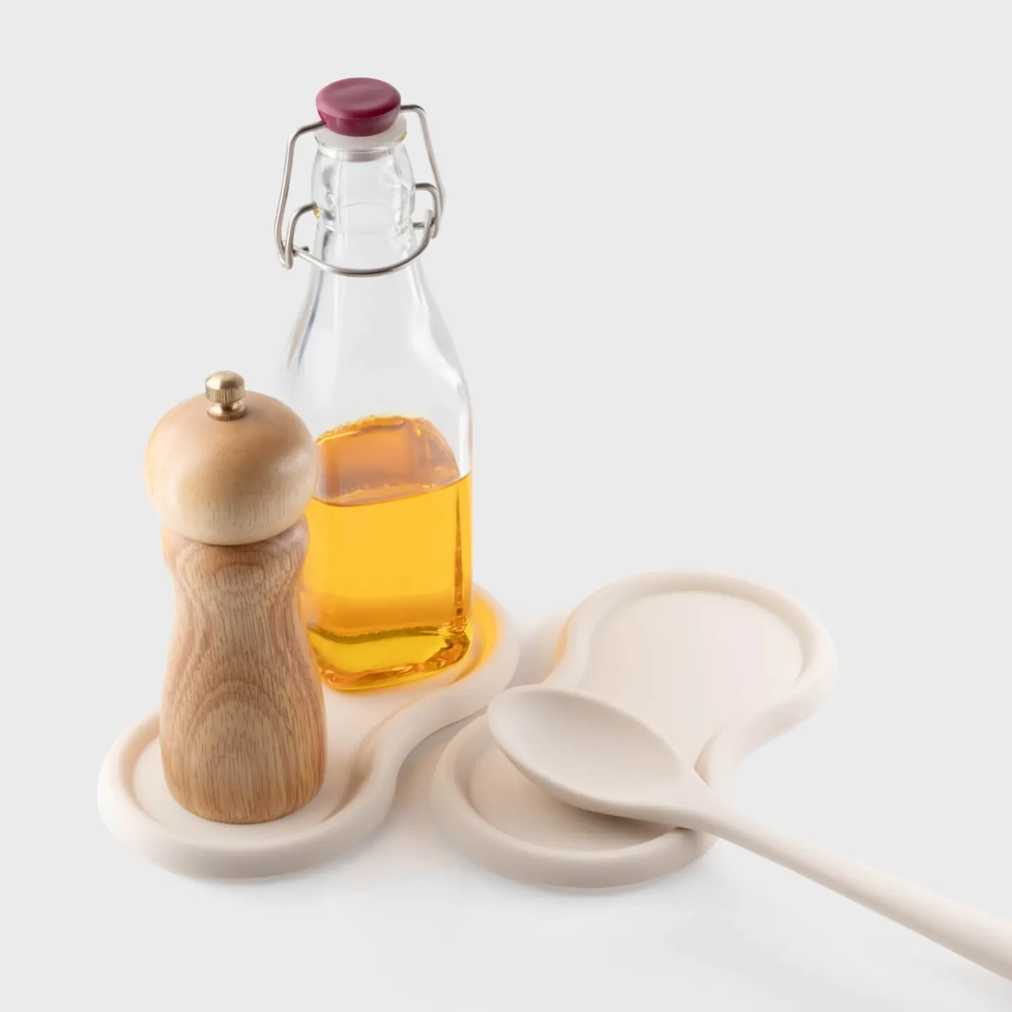 Taylor’s Eye Witness presents the Silicone Mill, Bottle & Spoon Rest in Oyster, designed to keep your countertops clean and organised. Crafted from durable, non-slip silicone, this sleek and practical kitchen accessory provides a stable resting place for your salt and pepper mills, bottles and spoons, preventing mess and protecting surfaces from scratches. The stylish oyster colour complements a variety of decors, adding a modern touch to your kitchen.