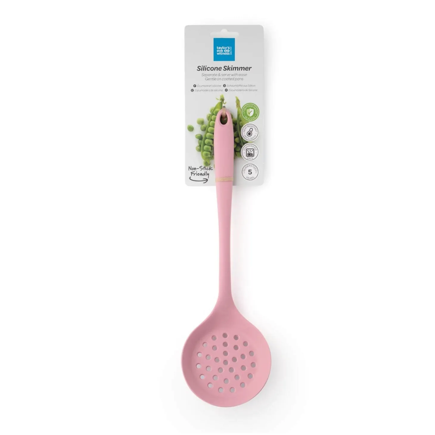 Taylor’s Eye Witness presents the Silicone Skimmer in Cherry Blossom, perfect for picking up dumplings and wontons with ease. It quickly drains liquids, which makes it great for stir-frying or using a wok. Additionally, it’s ideal for straining pasta, vegetables, and other foods. The steel core is durable, whilst this tool is heat, odour and stain resistant, ensuring the bright colour will always stay bright!Â
