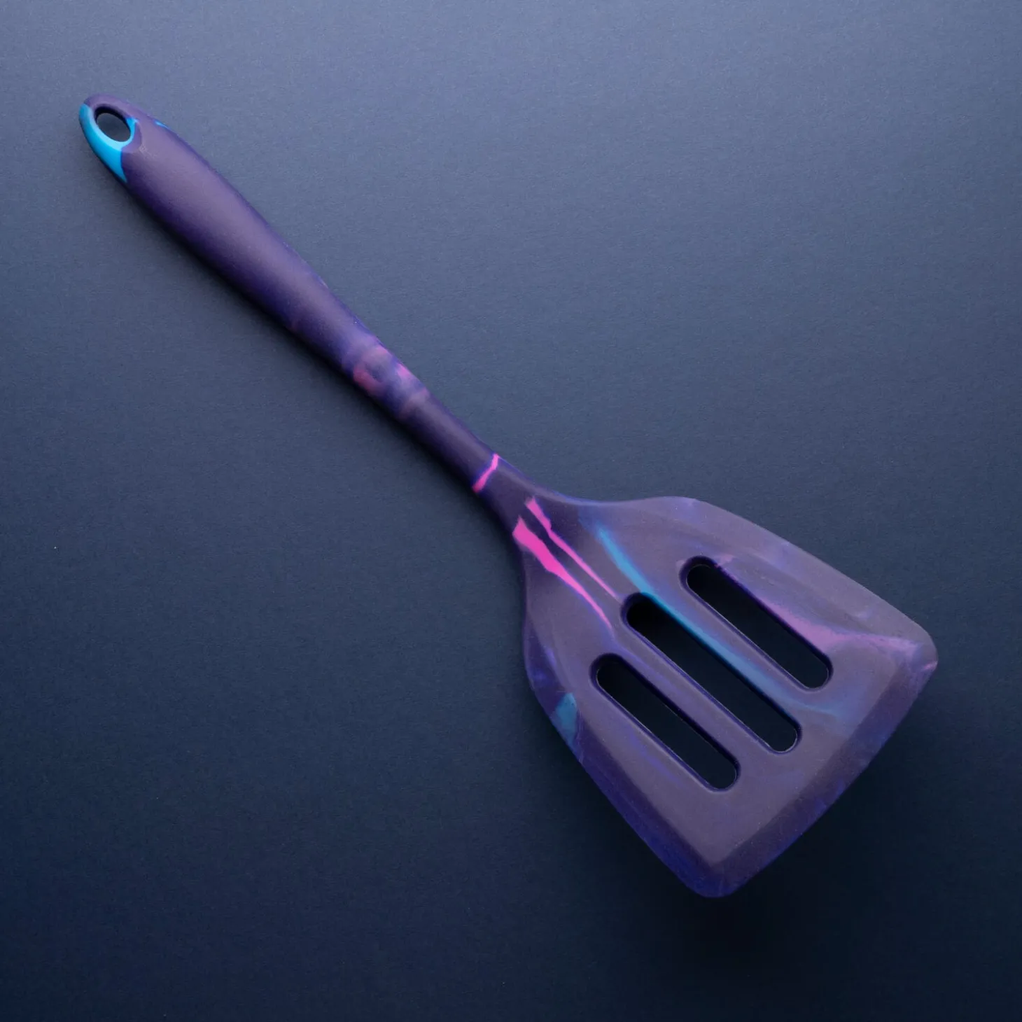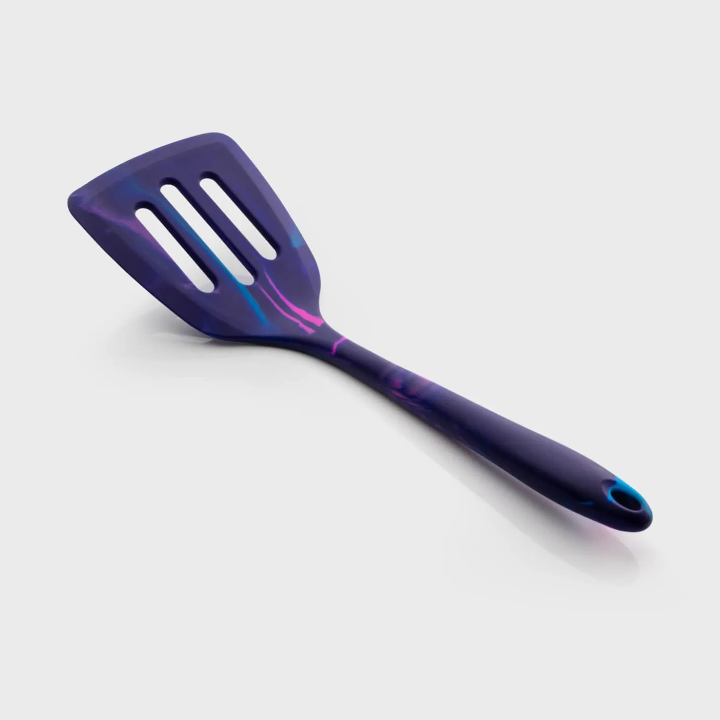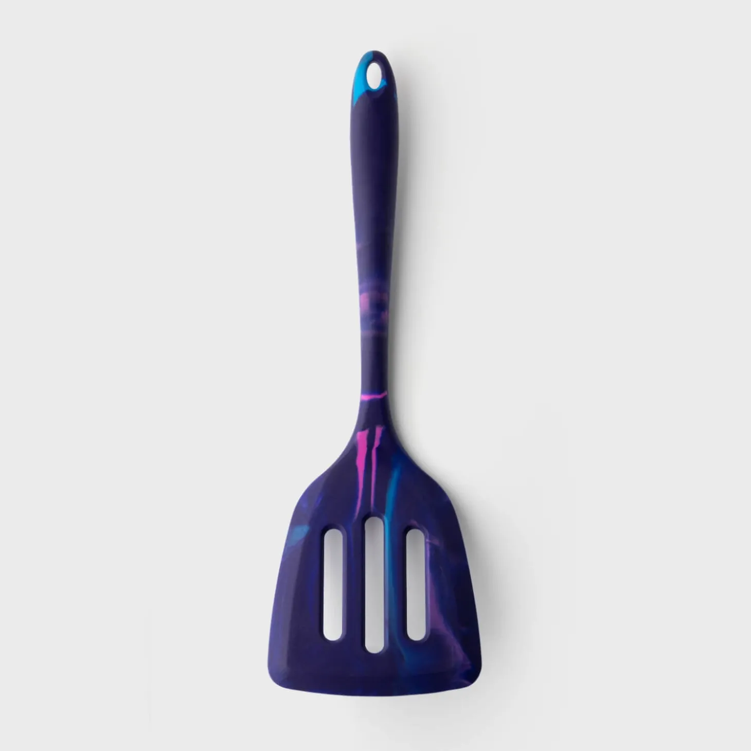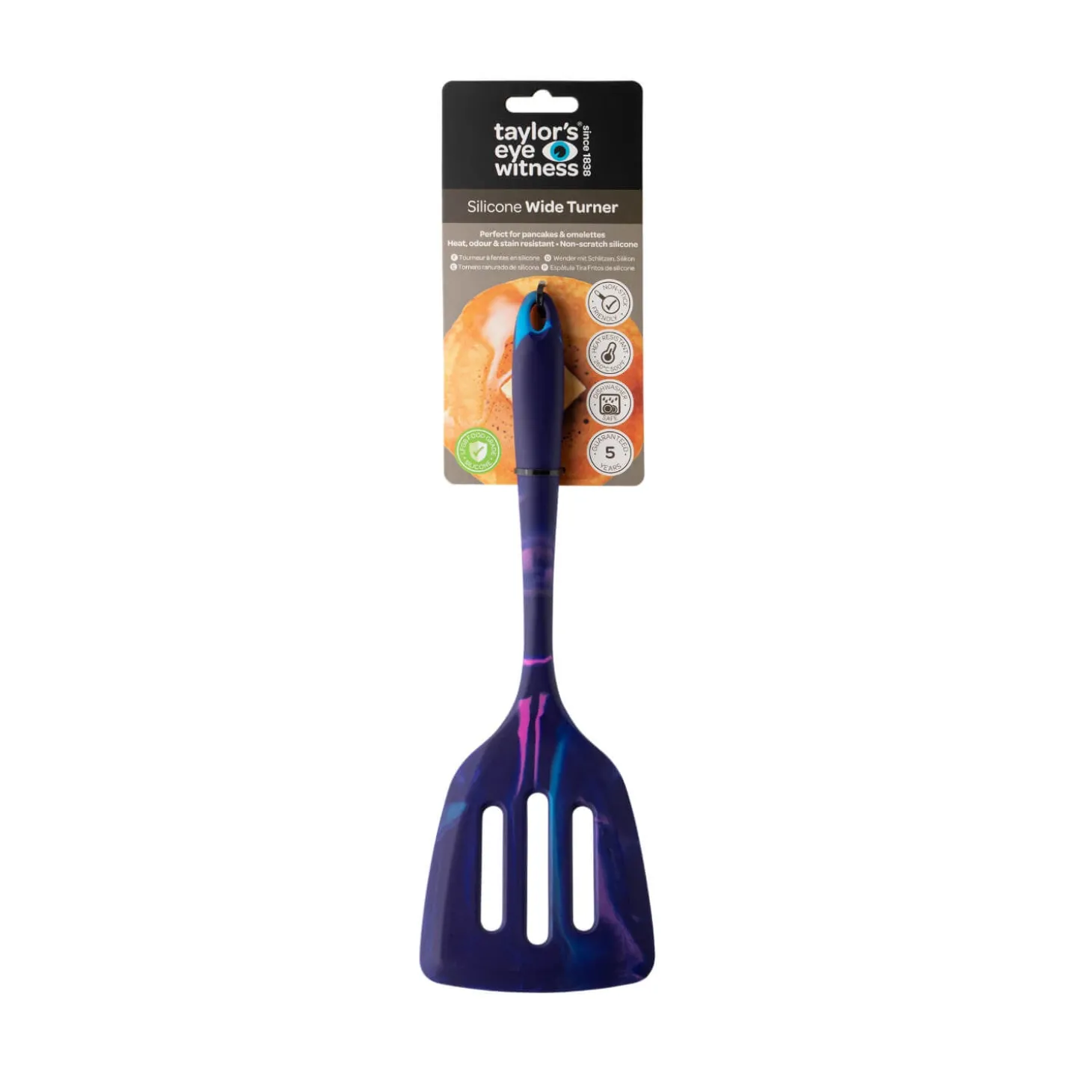 Taylor’s Eye Witness presents the Silicone Wide Slotted Turner which forms part of their Nebula range. Ideal for flipping fish cakes, omelettes, pancakes and much more, and is a great tool for an enthusiastic cook in the kitchen. The steel core is durable, whilst this tool is heat, odour and stain resistant, ensuring the bright colours will always stay bright! All pieces in this range are created with a marbling effect making them all different and delightfully individual.