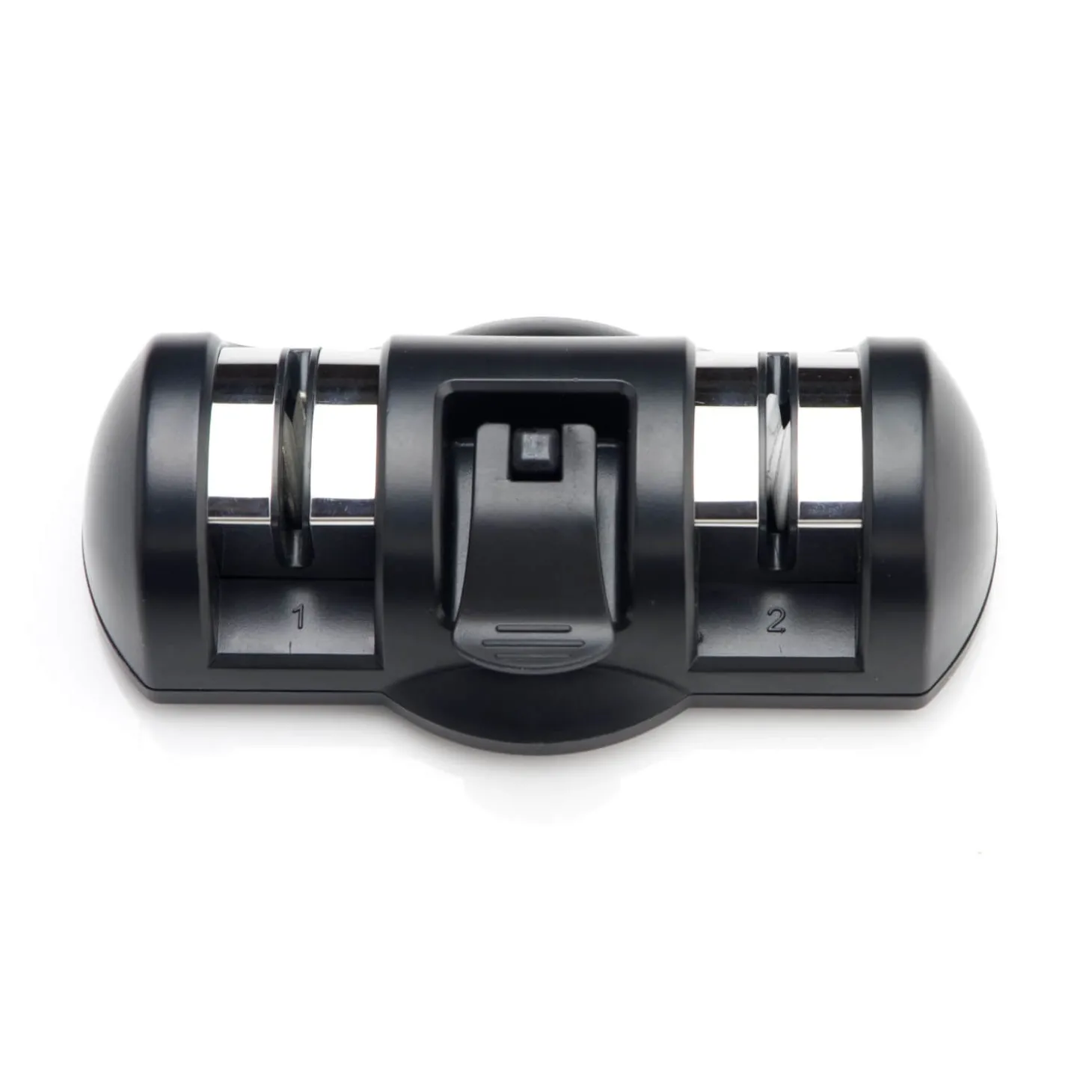 Simple, practical and easy to use. This 2 stage pull through knife sharpener from Taylor’s Eye Witness is a perfect choice for everyday cooks when sharpening knives. Featuring two wheels, one that is a diamond sharpening wheel and the other a ceramic honing wheel, the base of the gadget is secured to the worktop by a vacuum suction grip providing stability during use.