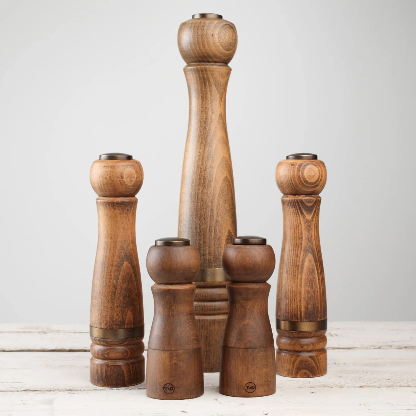 T&G Woodware presents the Opera 24cm CrushGrind Salt Mill, beautifully crafted from Antique Beech. This salt mill has a grinding mechanism that is fully adjustable and made from ceramic that will not corrode and is also able to grind whole dried herbs and spices. A stylish and practical addition to your countertop or table.