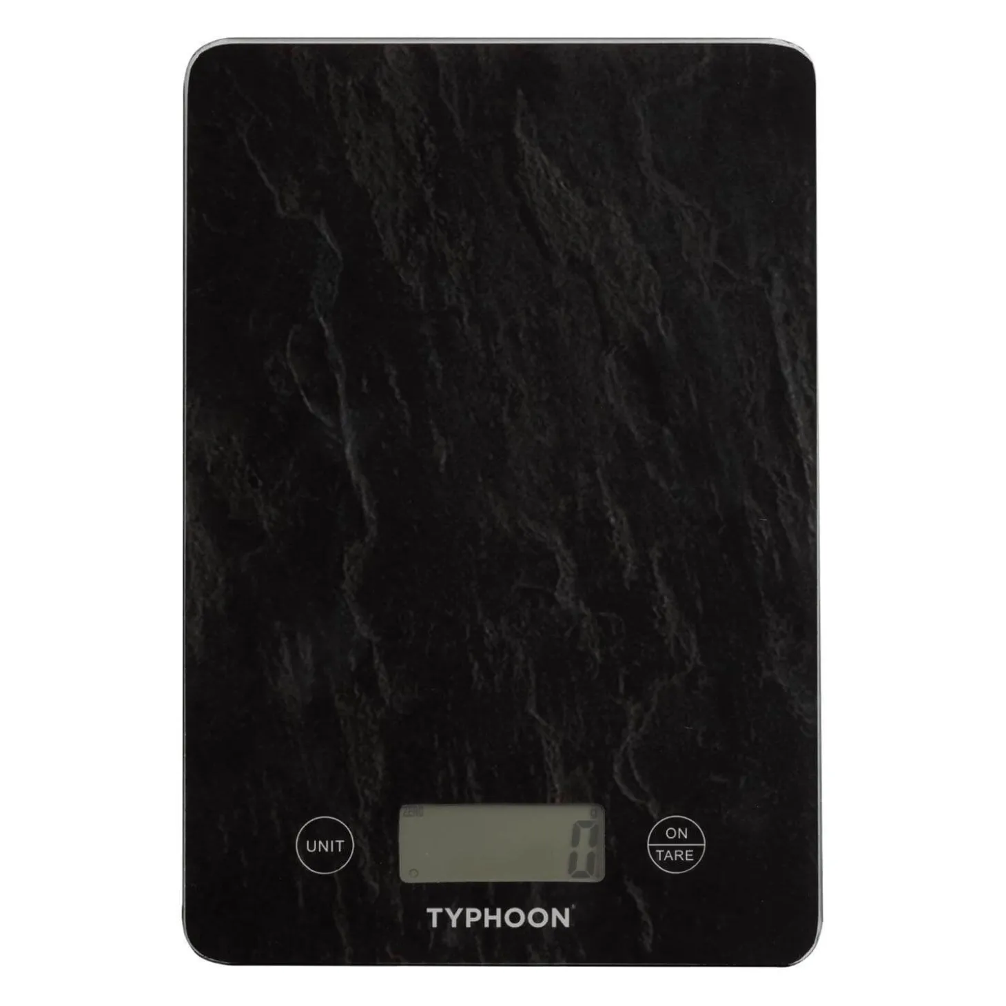 Typhoon introduces the Slate Effect Electronic Digital Scales as part of their Elements range. This scale features an LED display and includes a battery. It can measure up to 5 kg and provides readings in grams, fluid ounces, millilitres, and kilograms. Compact and convenient, the scale can be easily stored away when not in use.