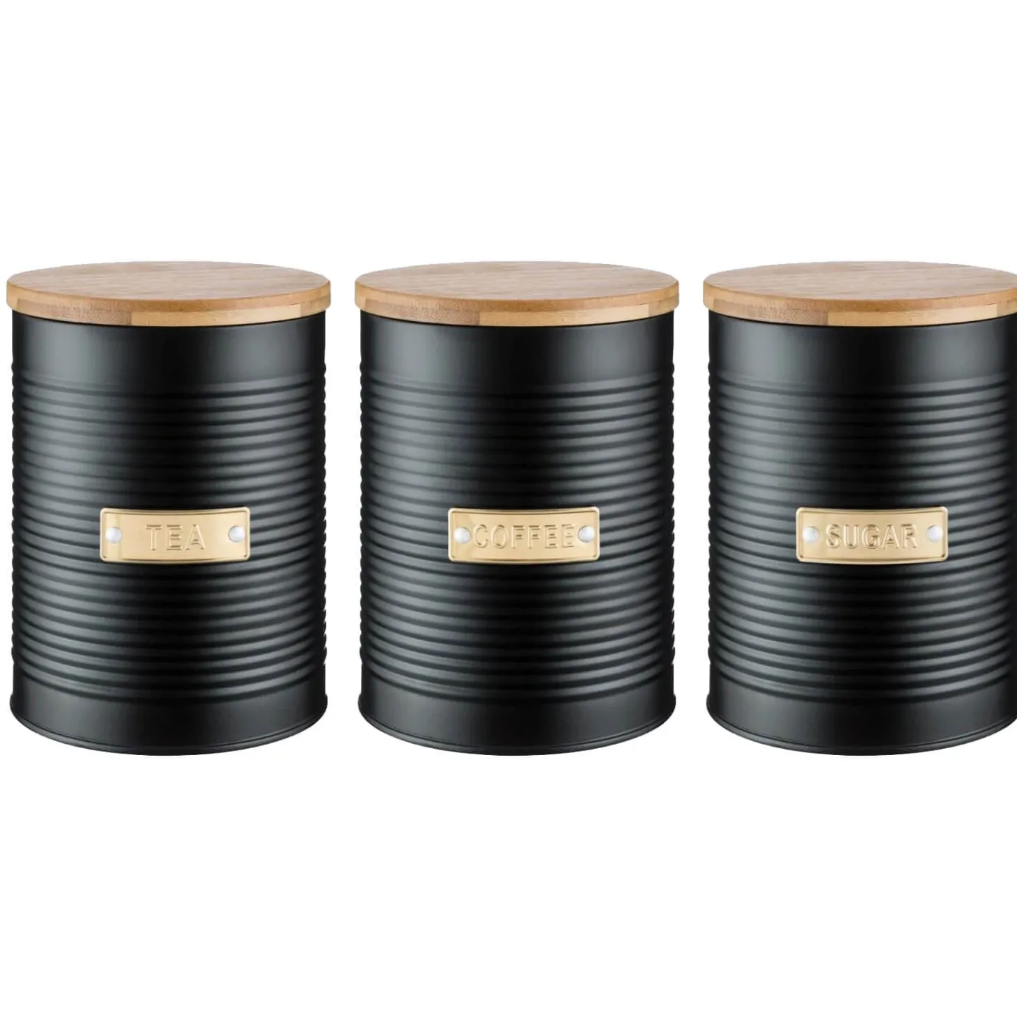 Typhoon presents this 3 piece canister set in Otto Black as part of the Typhoon Living collection. Featuring a variety of contemporary and colourful storage solutions. Each canister in the Typhoon living collection features a coated seamless steel construction and airtight lids crafted from sustainable bamboo.