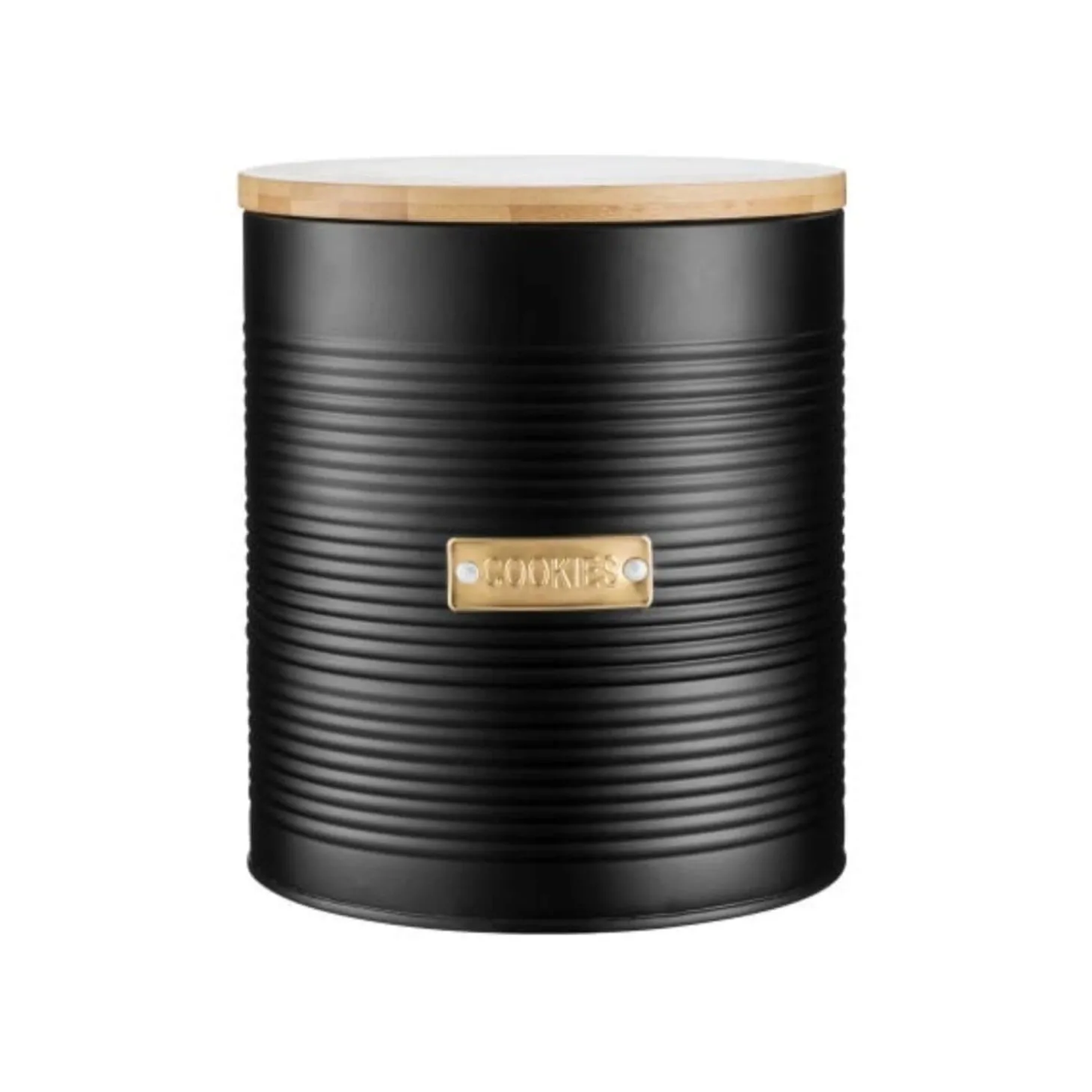 The Typhoon Living Cookie Tin in Otto Black is part of the Typhoon Living collection which features a variety of matte black and gold coloured storage solutions which offer both style and practicality. Each item in the Typhoon Otto range features a black coated seamless steel construction, airtight lids crafted from sustainable bamboo and gold labels.