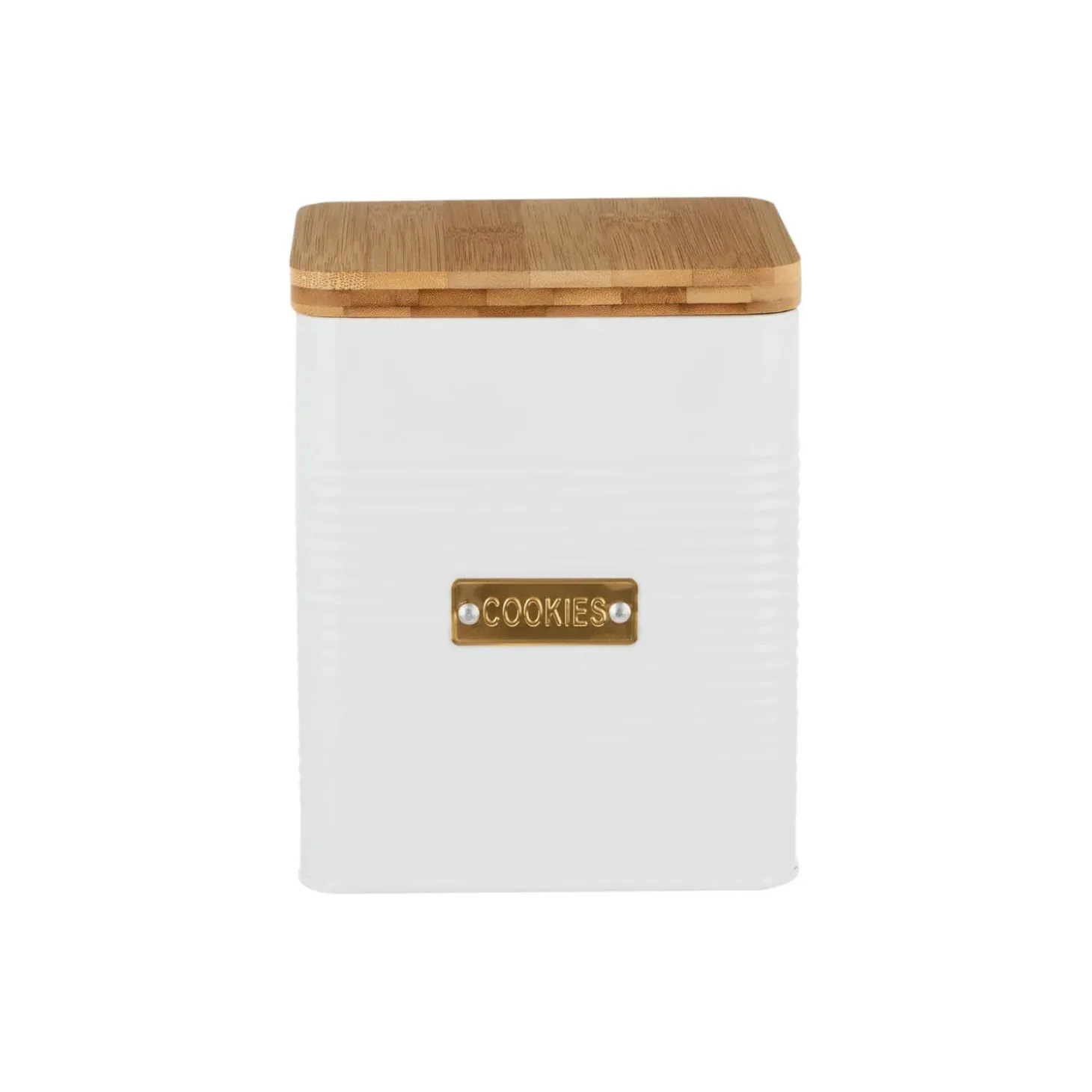 Typhoon presents their Cookie Canister in White as part of the Otto Square Collection which features a variety of matte and gold-coloured storage solutions that offer both style and practicality. Each item in the Typhoon Otto range features a coated seamless steel ridged construction, and airtight lids crafted from sustainable bamboo with a gold label. Ideal for storing all types of cookies and biscuits.