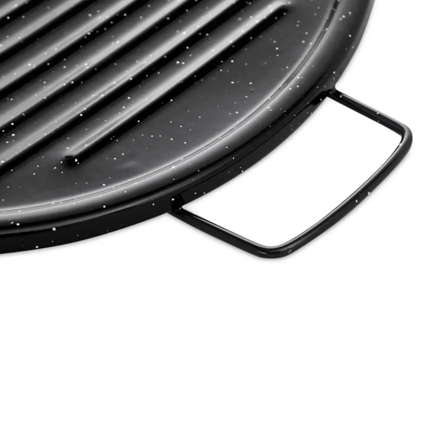 Vaello presents the Enamel Coasted Ridged Grill Pan, suitable for grilling meat, vegetables and fish. The double handles allow you to move the pan safely and easily around the kitchen or BBQ.