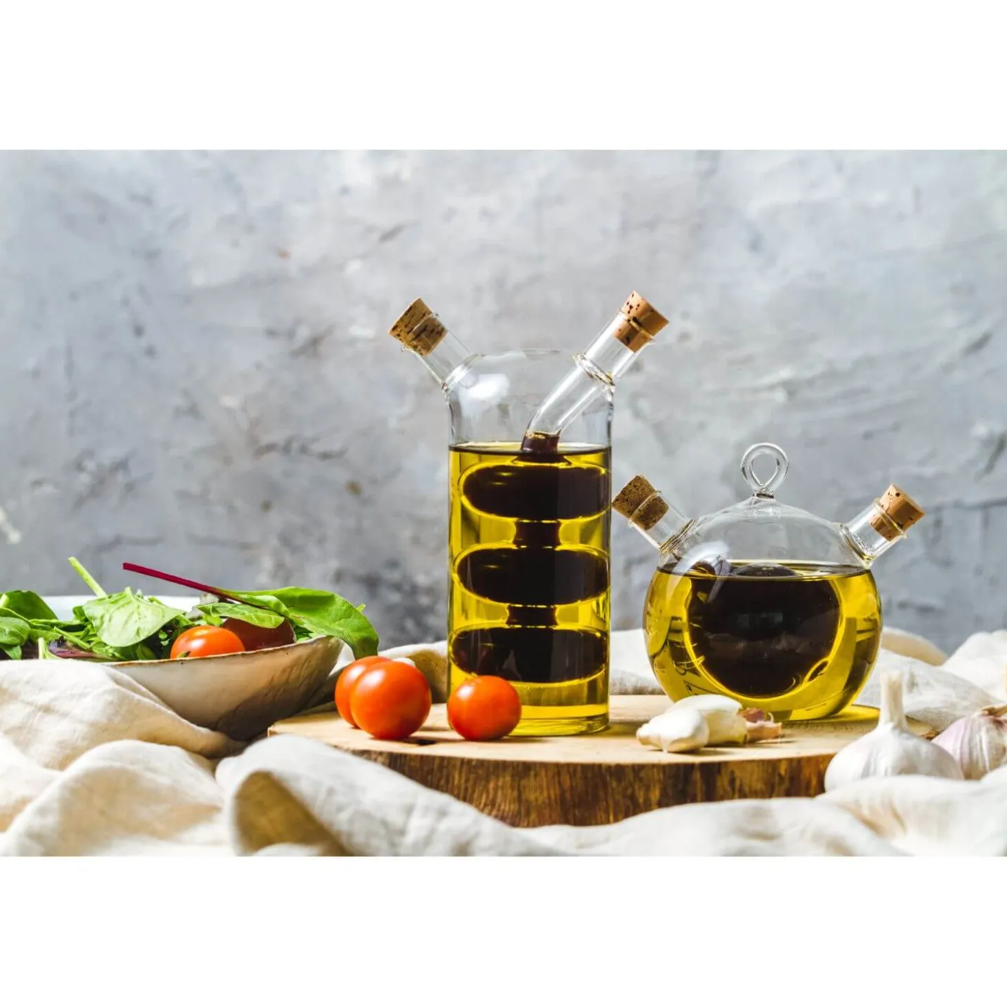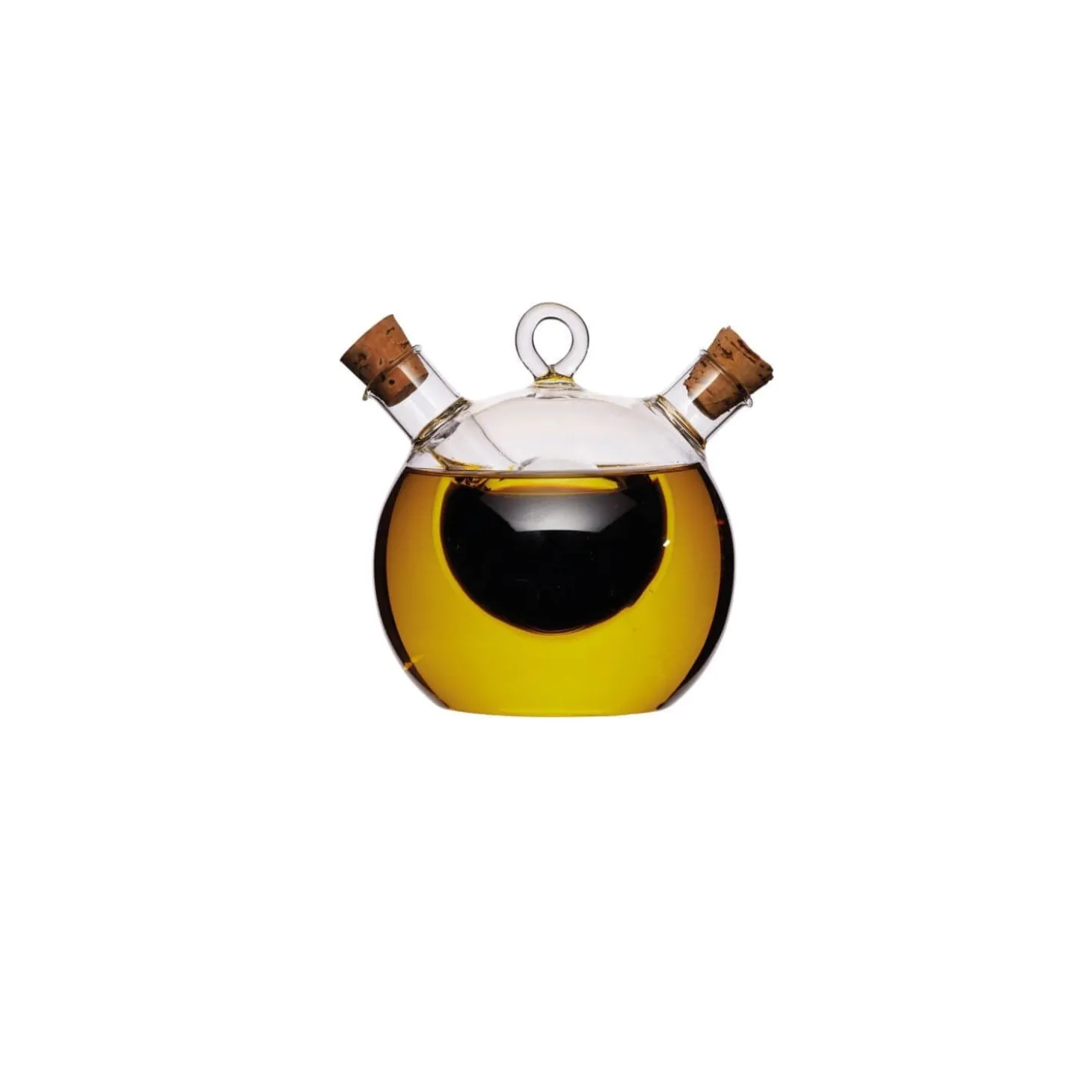 A great unique way to serve your oil and vinegar in this World of Flavours Round Dual glass bottle from KitchenCraft. Both practical and great to look at, this bottle has two sections, an inner bottle and an outer bottle both with their own individual tight-fitting cork stoppers. A perfect tabletop oil and vinegar pourer for your salads, bread and much more. Â
