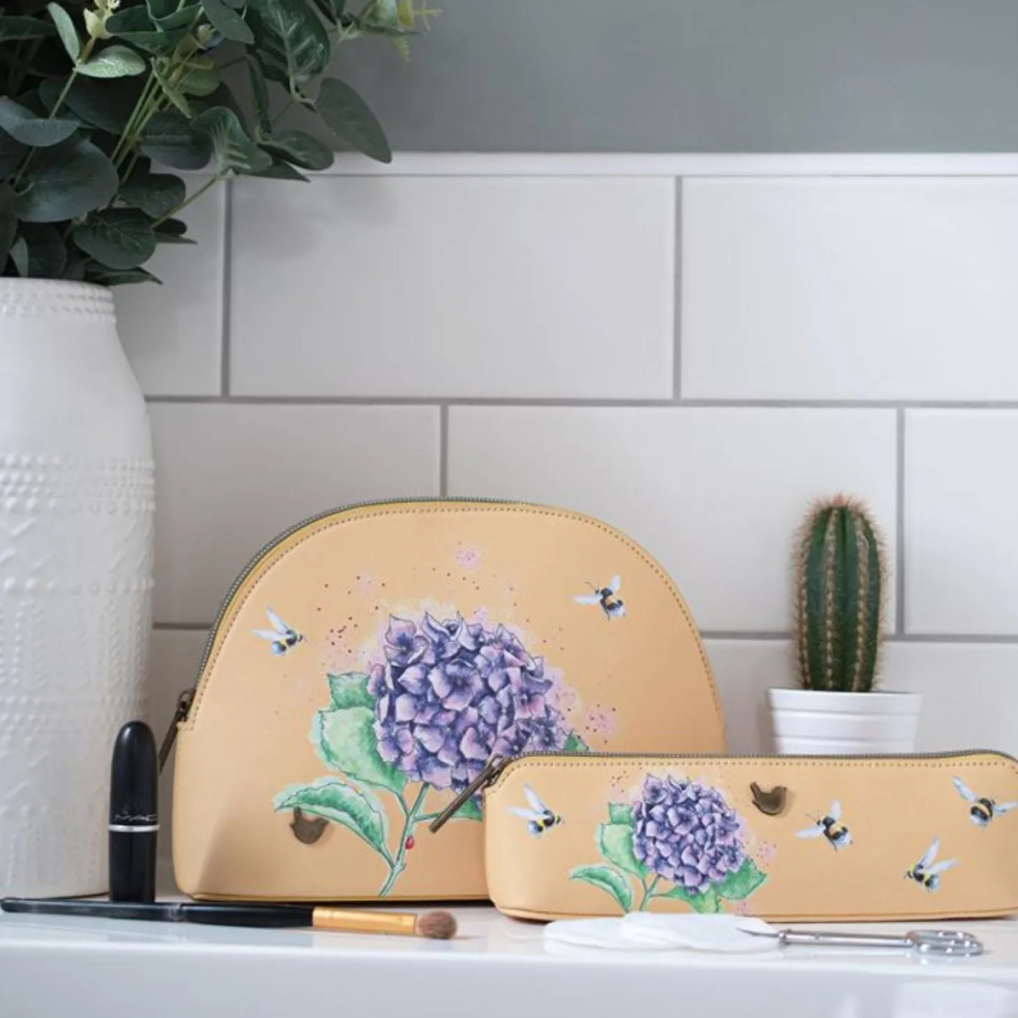 Wrendale Designs presents their ‘Flight Of The Bumbebee’ Brush Bag / Pencil Case Bag. Made of vegan leather, this bag has a branded zip-top fastening and features the wren stud made of antique brass, the illustrations are by the renowned artist Hannah Dale featuring delightful bees and a hydrangea flower on a yellow background. This lovely bag is both ideal to hold your make-up brushes or alternatively would make a lovely pencil case for work, school or college. A great gift idea or a treat for yourself.