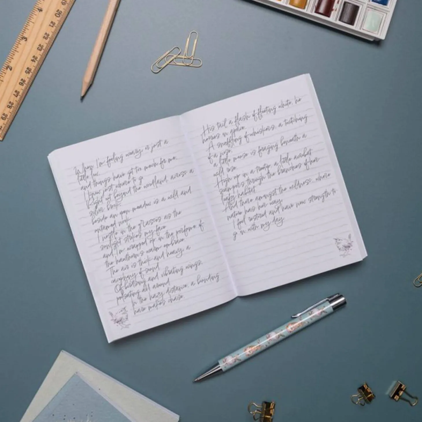 - A6 notebook with approximately 48 lined pages each featuring a wren detail