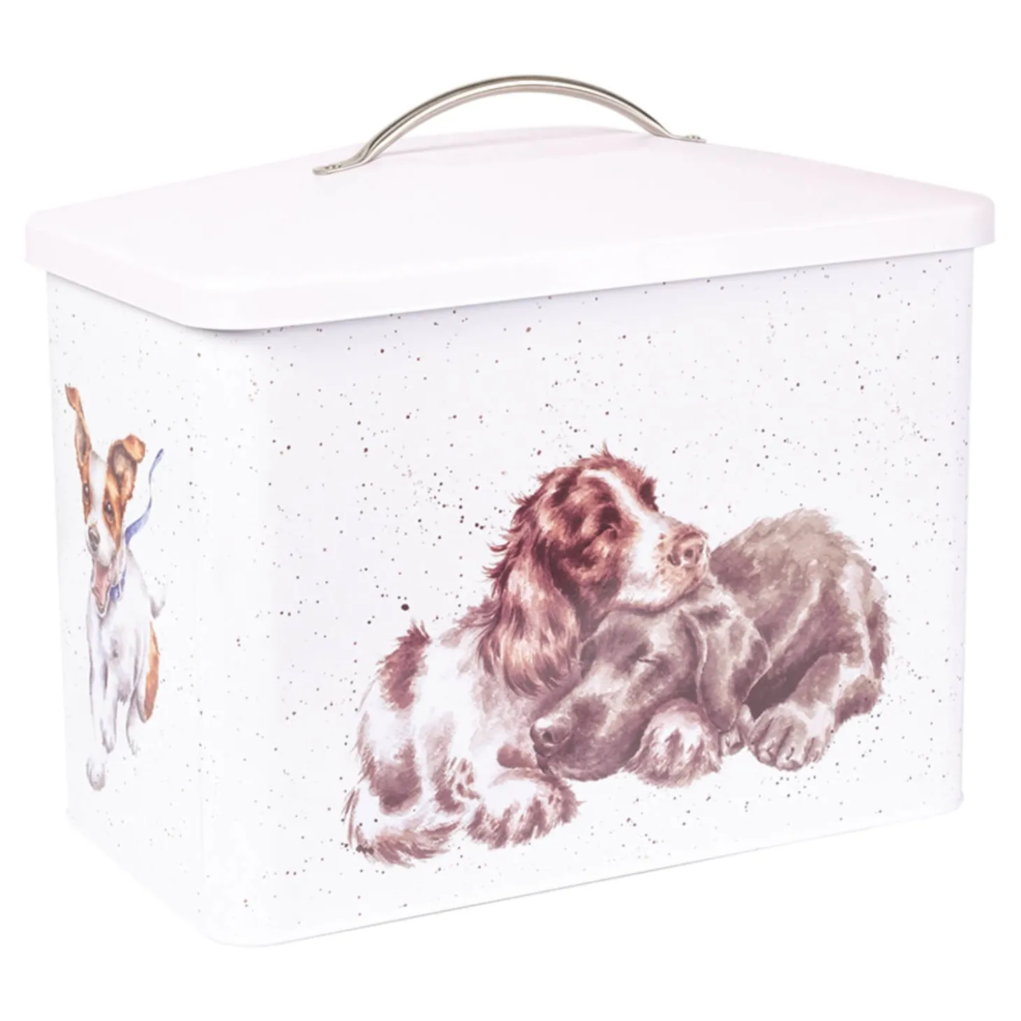 Wrendale Designs presents the ‘A Dogs Life’ Bread Bin, featuring illustrations by renowned artist Hannah Dale. This lovely bread bin is made of durable carbon steel with a mushroom coloured edge with popular Wrendale dog designs around all the sides, which will make a great addition to your kitchen countertop.