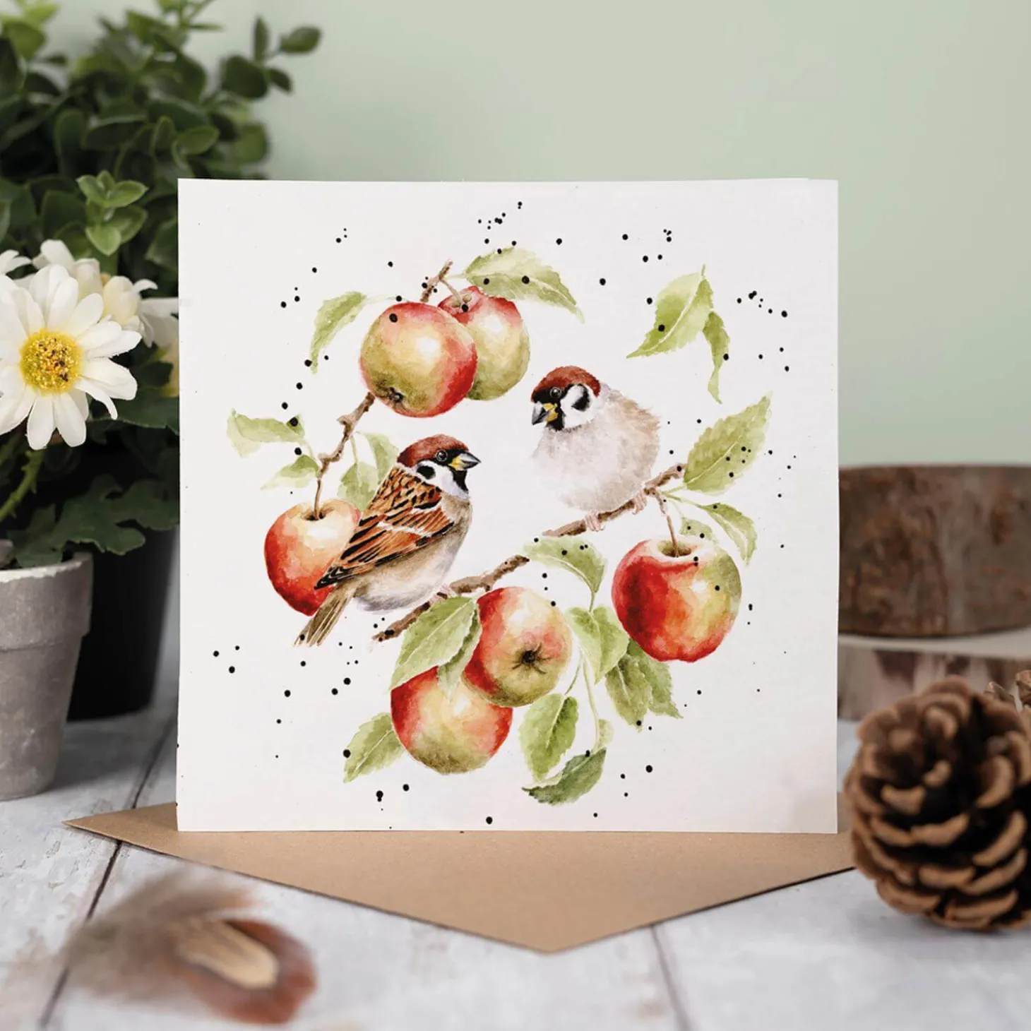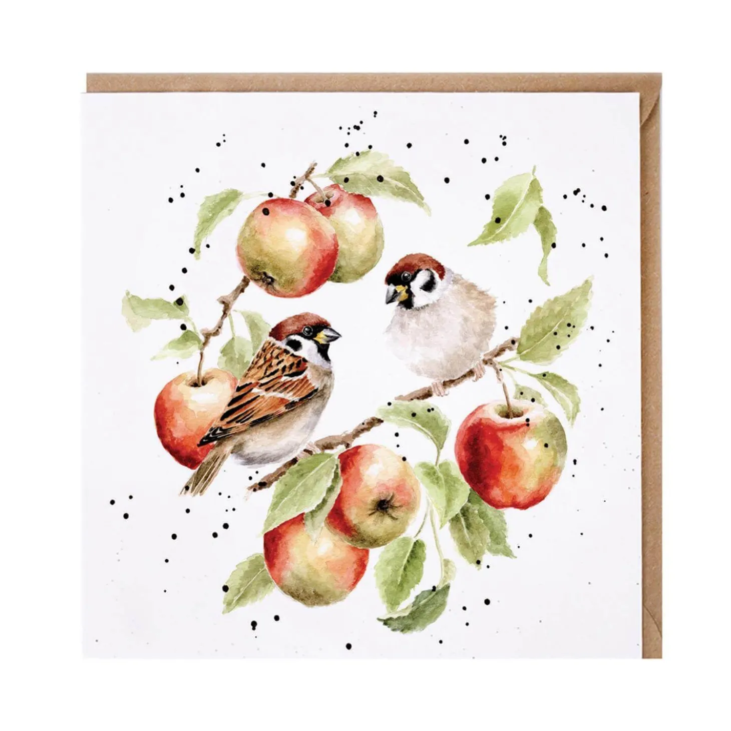 Wrendale Designs presents the ‘The Apple Tree’ card, featuring illustrations by renowned artist Hannah Dale. This charming card showcases two delightful sparrows sitting on the branch of a lovely apple tree. The blank interior invites you to unleash your creativity; personalise it with a heartfelt message that is sure to warm the recipient’s heart.