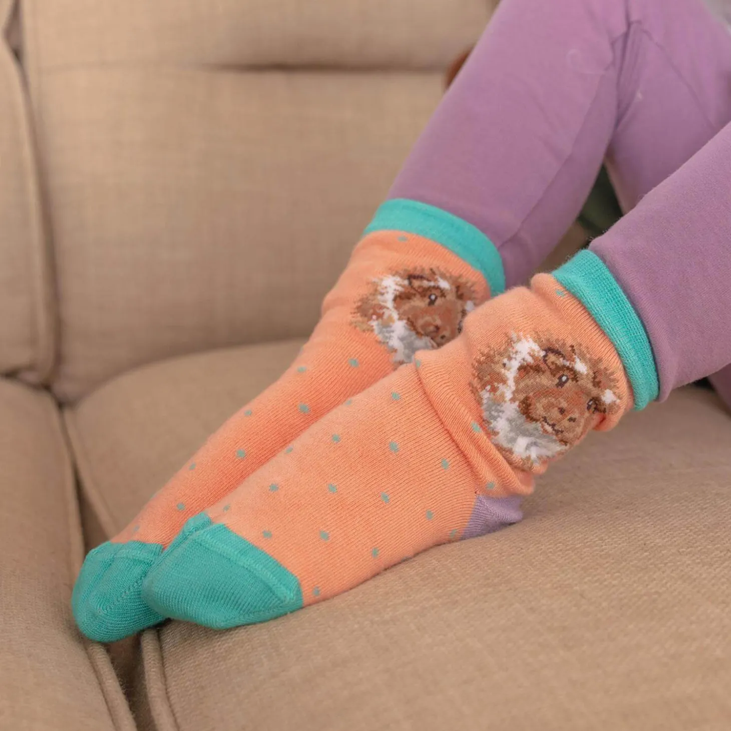 Wrendale Designs presents ‘Grinny Pig’ Childrens Socks, made from beautifully soft bamboo to keep little toes nice and cosy and warm. Decorated with turquoise blue on the toes and tops with a delightful guinea pig on an orange background. These lovely childrens socks would make a delightful gift.