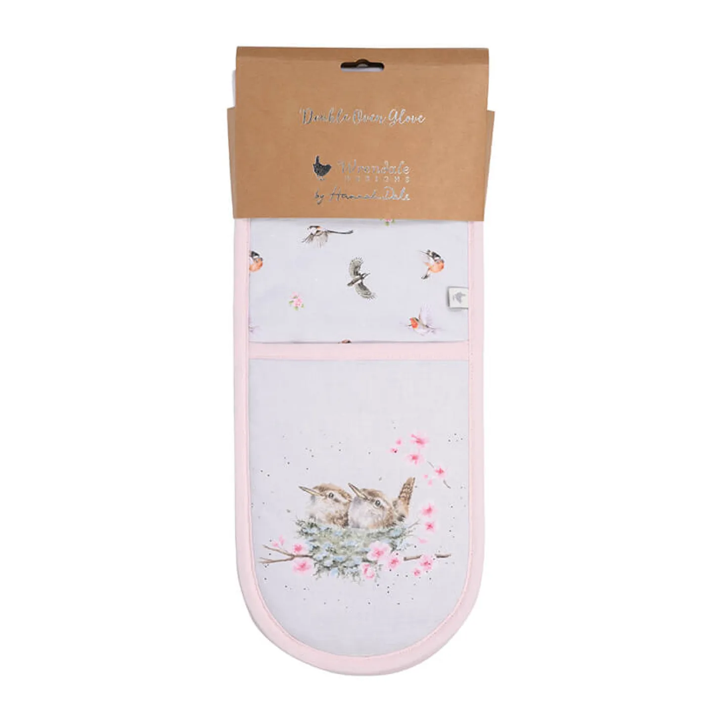 Wrendale Designs presents the ‘Feathered Friends’ Double Oven Gloves, beautifully illustrated by renowned artist Hannah Dale. These lovely light grey coloured oven gloves are decorated with a variety of birds with a pair of gorgeous birds nesting on either end, made from cotton with a towelling reverse making these oven gloves both practical as well as stylish. An excellent gift for the cook or baker in your life or a treat for yourself.