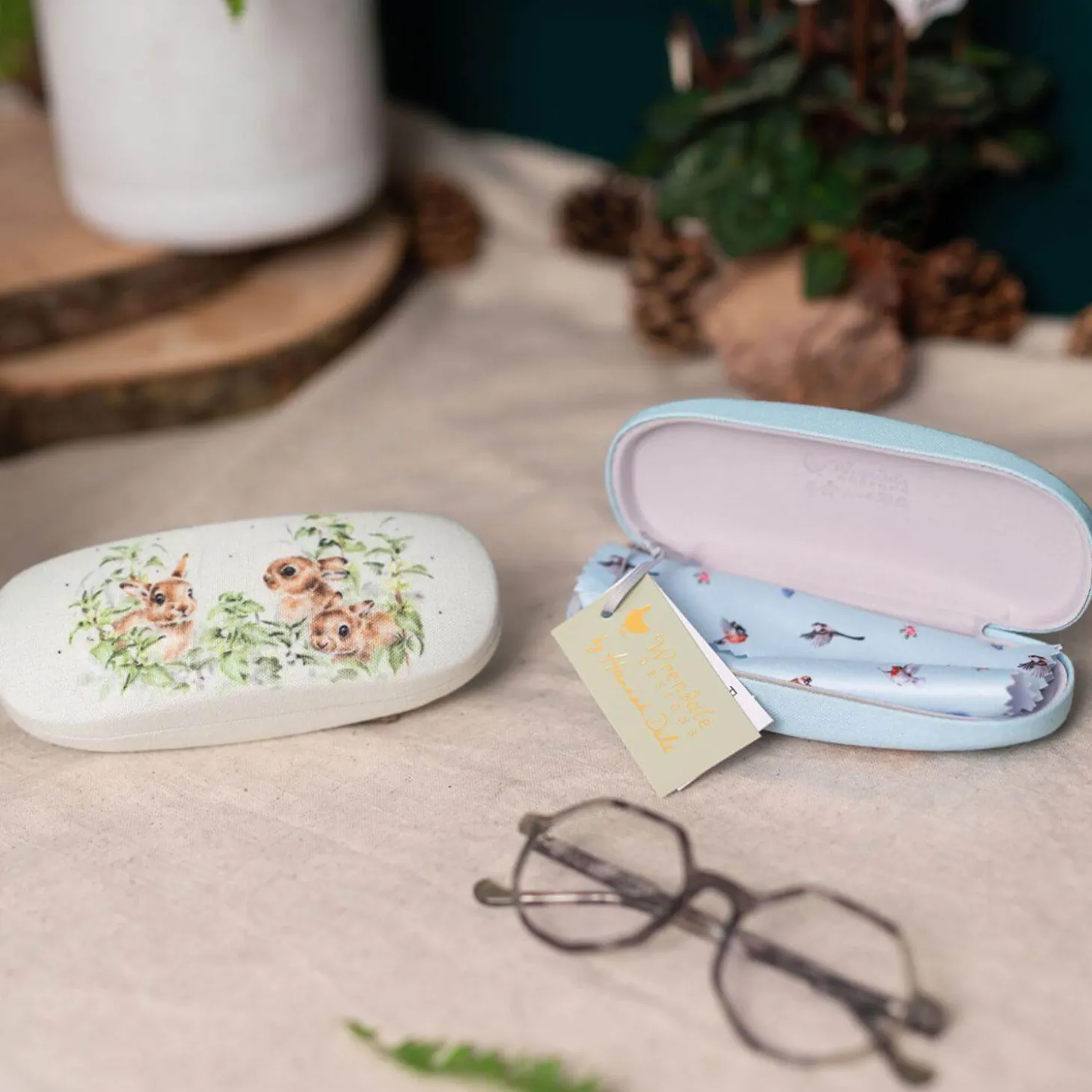 Wrendale Designs presents the ‘Spring Hares’ Glasses Case, featuring illustrations by the renowned artist Hannah Dale. This delightful glasses case showcases beautiful hares on both sides, along with a complementing cleaning cloth, all set against a lovely creamy green background. It’s a perfect gift or a wonderful treat for yourself!