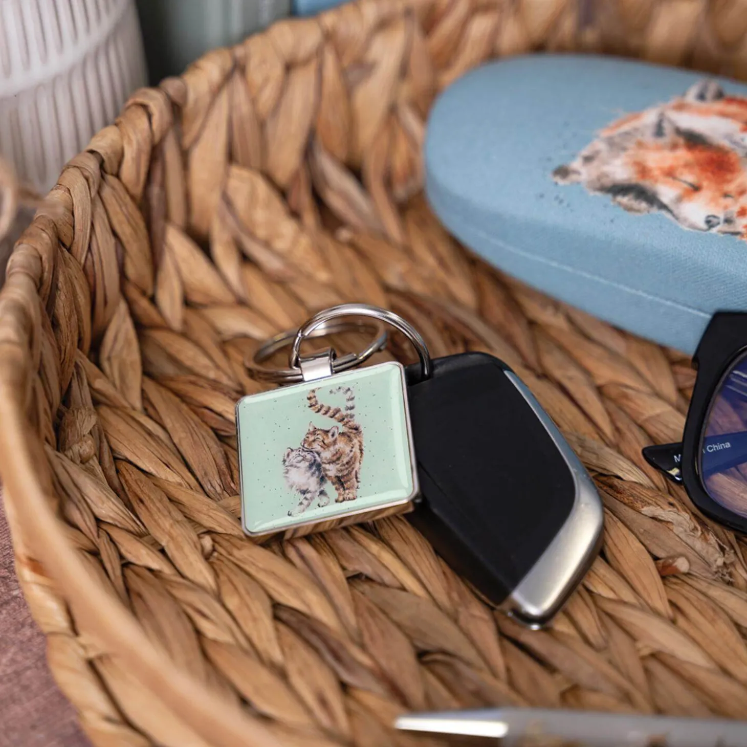 Wrendale Designs presents the ‘Feline Good’ Keyring, featuring illustrations by renowned artist Hannah Dale. This keyring features two delightful cats strolling together on a pale green background. The keyring is made of a resin finish and cast in durable zinc alloy metal. You will find ‘Wrendale Designs’ Hannah Dale laser inscribed on the reverse side. A great keyring that would make a lovely gift or a treat for yourself.