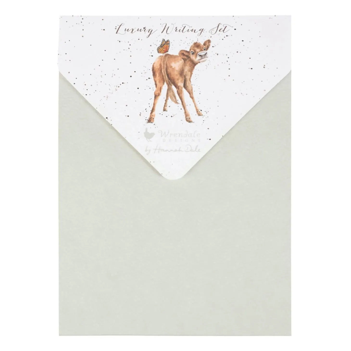 Wrendale Designs presents their ‘Flutterly Fabulous’ Letter Writing Set, illustrations by renowned artist Hannah Dale. This lovely writing set is comprised of 20 sheets of paper with beautiful illustrations of a calf, flowers and a butterfly together with 10 envelopes with lots of calves on the inside and a butterfly on the outside, the set comes in a presentation box made of textured board. A wonderful way to keep in touch with family and friends, this lovely set would make a lovely gift or a treat for yourself.