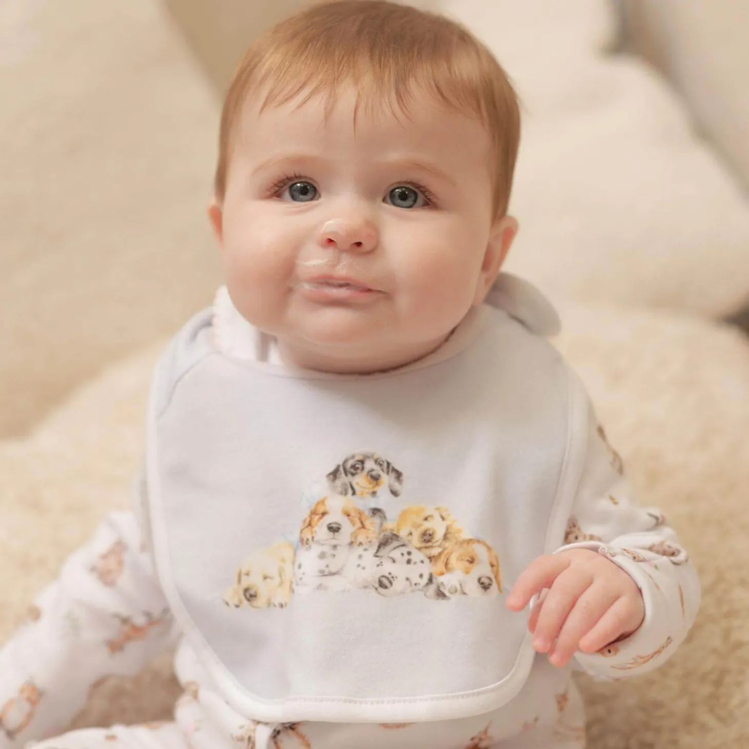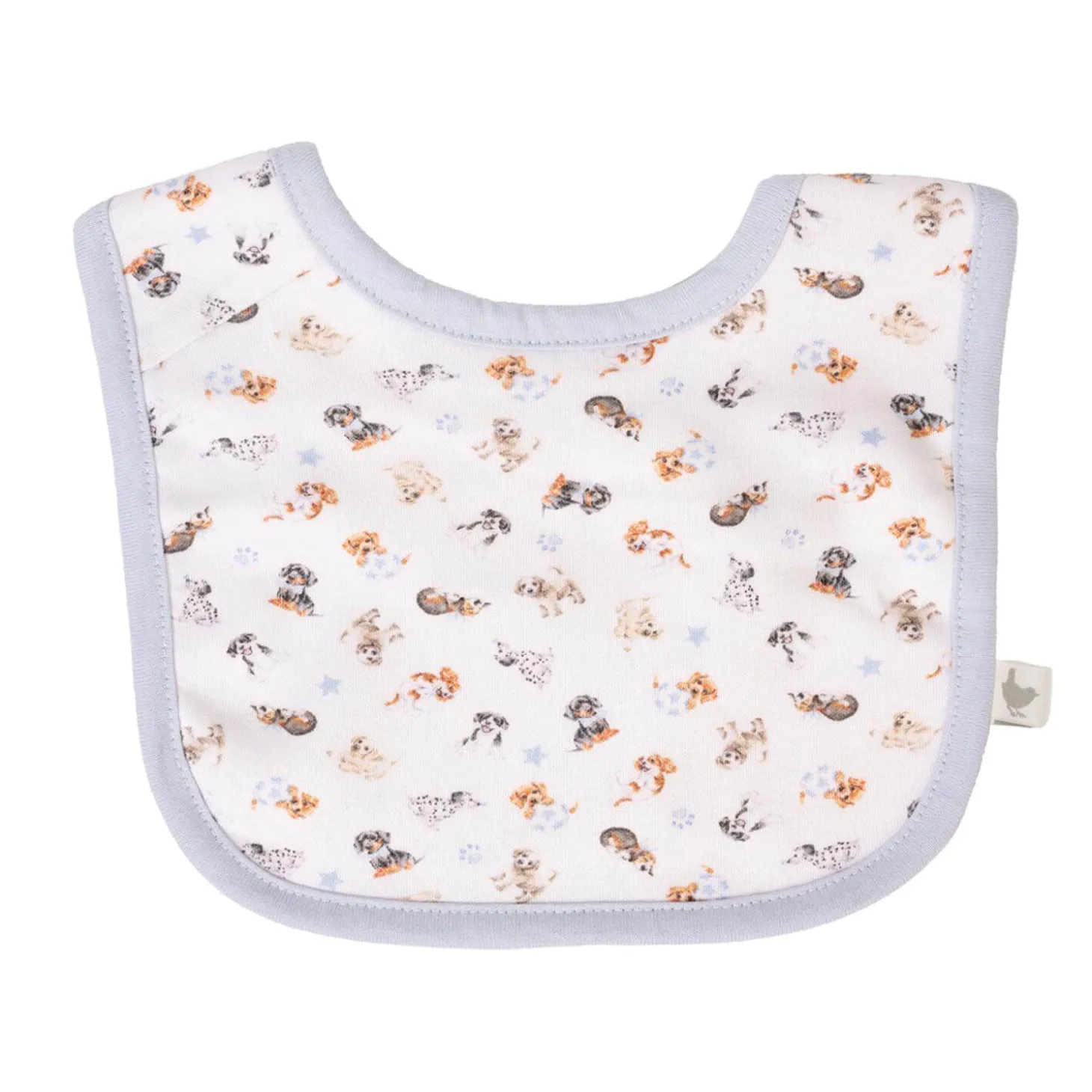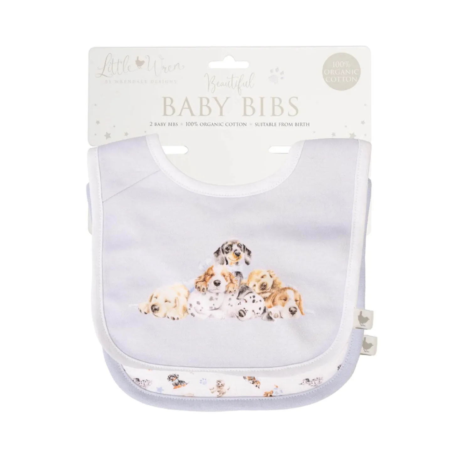 Wrendale Designs presents the ‘Little Paws’ bib gift set, part of their Little Wren Collection. This set includes two bibs made from 100% organic cotton. One bib features a striking placement print on a light blue background, while the other showcases an all-over pattern on a white background with blue edging. Both practical and beautiful, this gift set is an ideal choice for newborns.