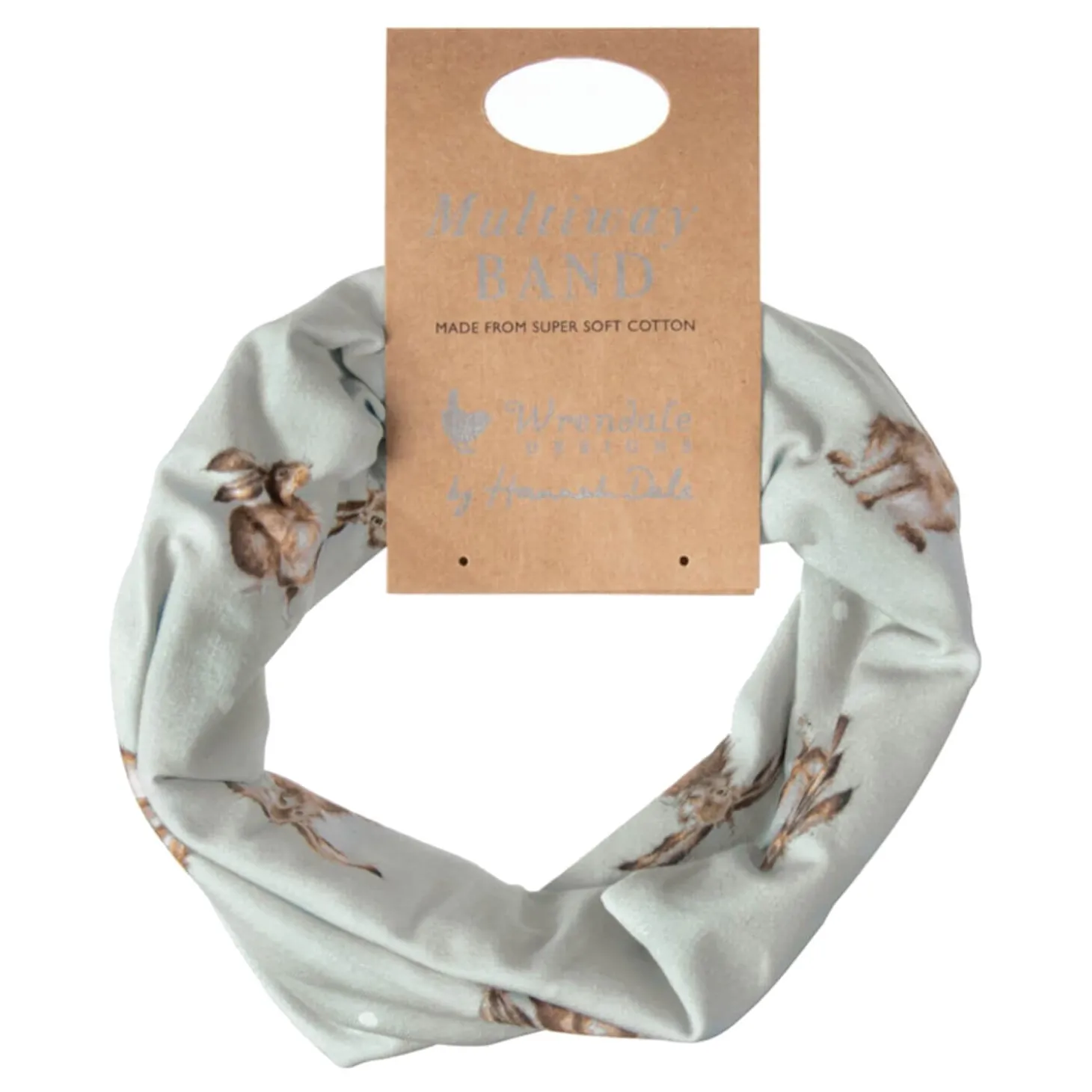 Wrendale Designs presents their ‘Hare-Brained’ Multi-Way Band, featuring illustrations by the renowned artist Hannah Dale. This beautiful band features lots of delightful hares on a pale green background, the band can be worn in many ways, it can be used as a headscarf, hair band, headband, neck scarf, bandana or a face covering to suit whatever style you wish to wear on any day. A great fashion accessory that would make a lovely gift or a treat for yourself. Other colours and designs are available.