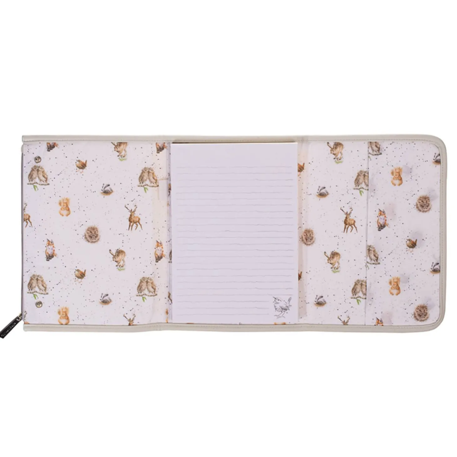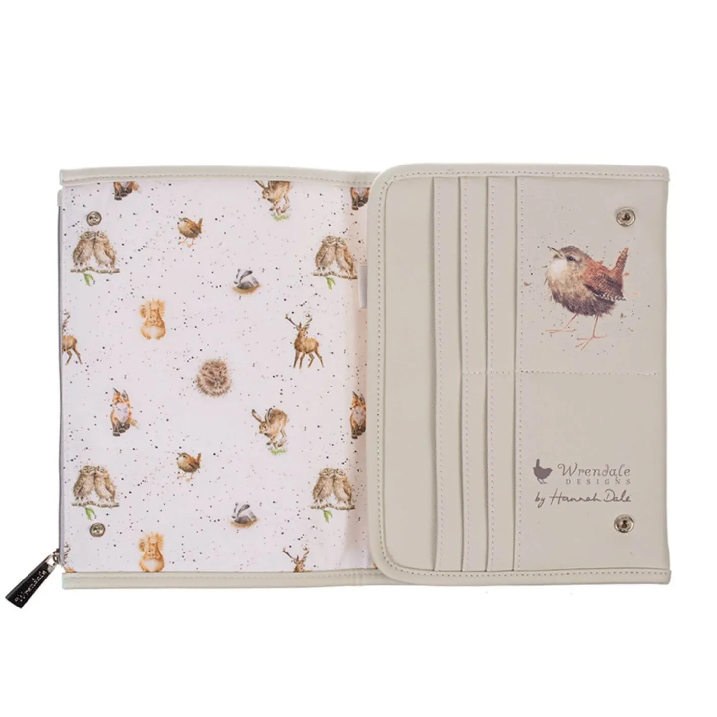 Wrendale Designs presents their ‘The Country Set’ Notebook Wallet featuring illustrations by the renowned artist Hannah Dale. Made from flexible vegan leather, this beautiful wallet has a zipped pouch, various pockets to hold cards, receipts, a pen loop and contains a handy illustrated A5 jotter pad inside. The outside is cream with an illustration of a hare on the front and two owls on the back and the contrasting lining features further illustrations of lots of different woodland creatures. This notebook wallet would make an ideal gift for anyone at work, school or college.