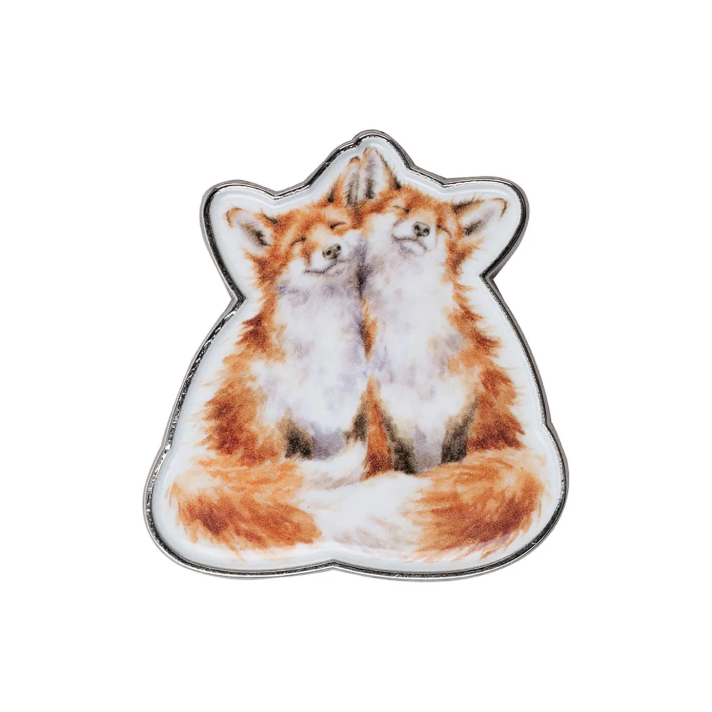 Wrendale Designs presents the ‘Contentment’ Fox Pin Badge, featuring illustrations by renowned artist Hannah Dale of two delightful fluffy foxes cuddling up together, happy and content. This lovely pin, cast in durable alloy with a sleek silver finish is perfect for adding a touch of countryside charm to any outfit, bag or accessory. A wonderful gift for nature lovers and Wrendale collectors alike.