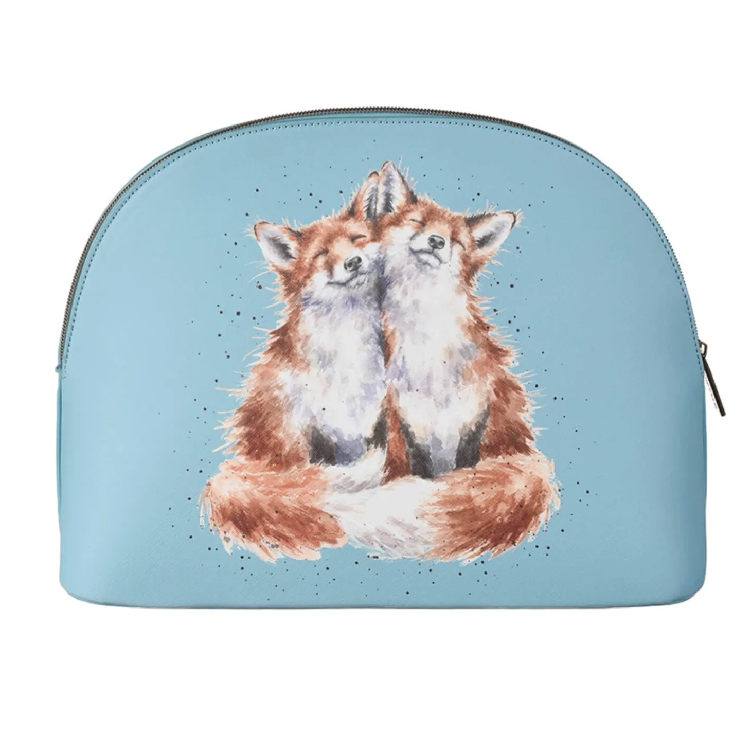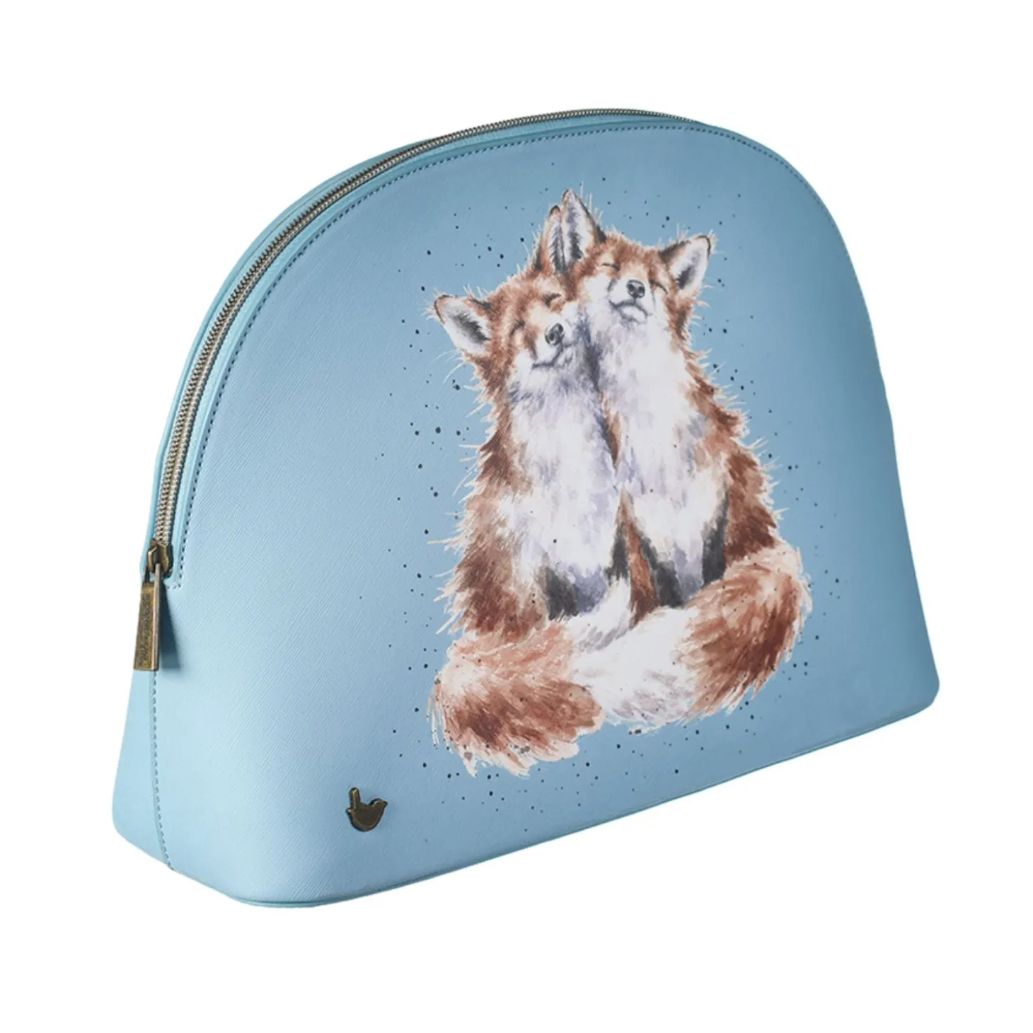 Wrendale Designs presents their ‘Contentment’ Large Cosmetic Bag that will contain all your make-up, brushes and much more. Made of vegan leather this cosmetic bag has a branded zip-top fastening and features the wren stud made of antique brass, the illustration by the renowned artist Hannah Dale features two delightful foxes on a bright blue background. This lovely cosmetic bag would make a lovely gift or a treat for yourself. Other designs and sizes are available.