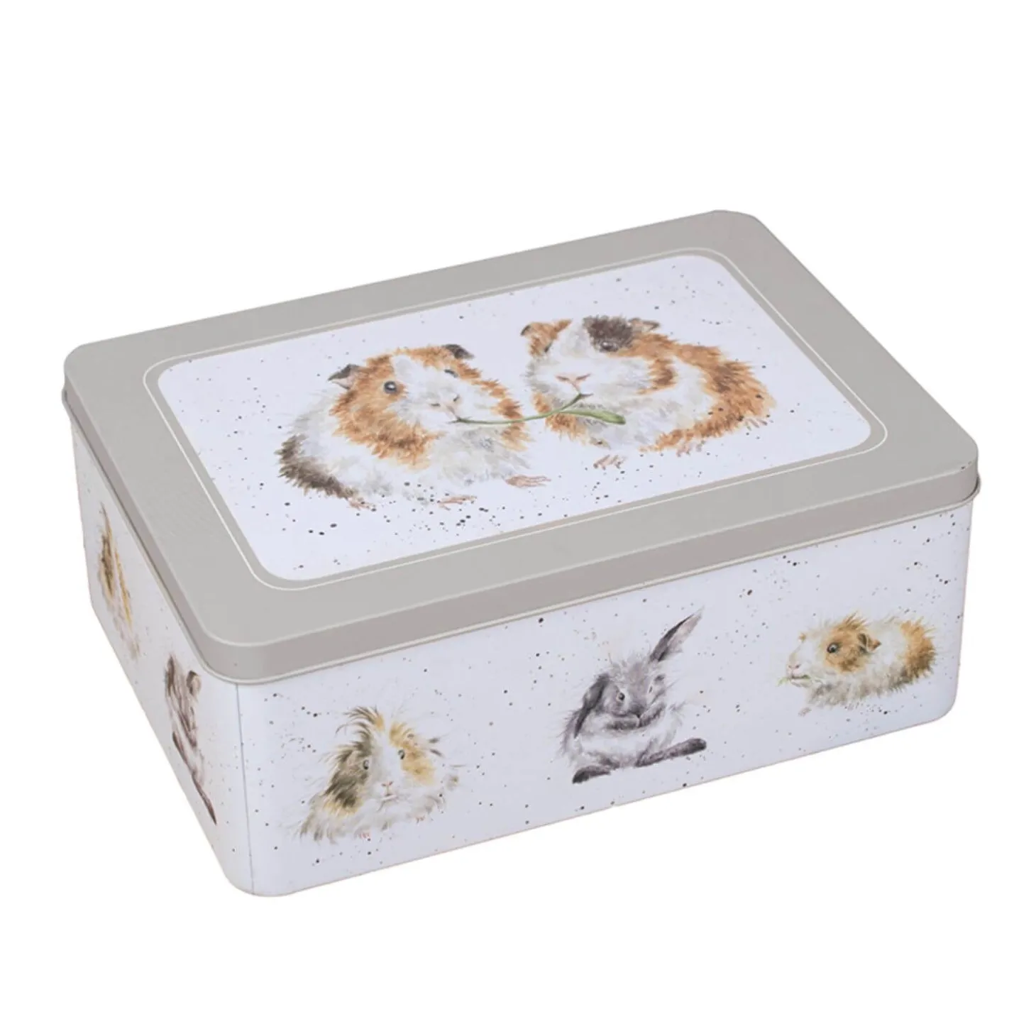 Wrendale presents the Guinea Pig Rectangular Tin with illustrations by Hannah Dale for Wrendale Designs. This tin has delightful illustrations all around the tin, on the lid and even inside too! Ideal for storing home bakes, biscuits and snacks.