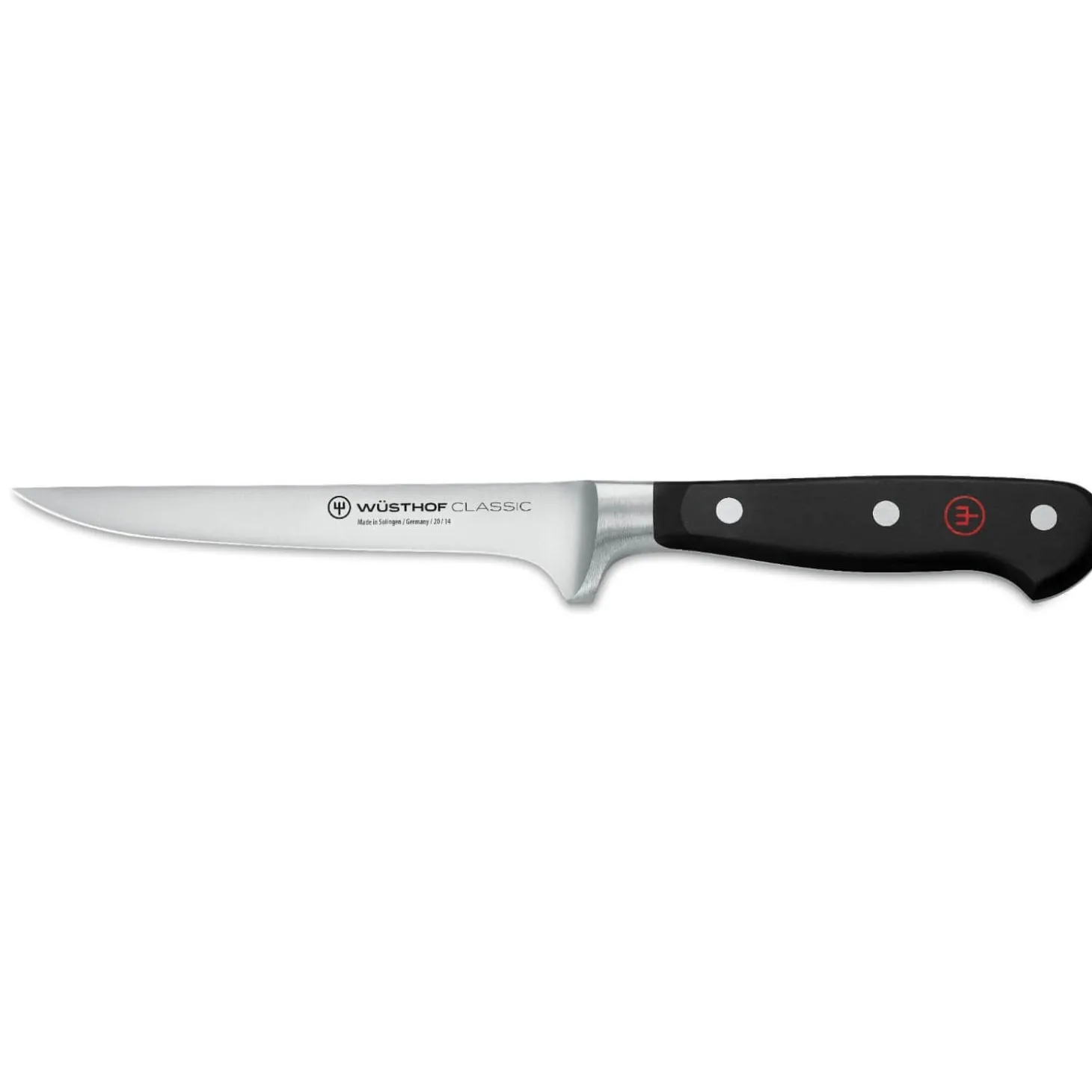 This 14cm Boning Knife forms part of the latest Wusthof Classic range of kitchen knives. Each blade in the Classic range has been created using a single billet of X50 Cr MoV 15 stainless steel which features a unique composition offering exceptional strength and sharpness. With a full tang and three-rivet handle, each blade is expertly balanced to provide the very best experience.