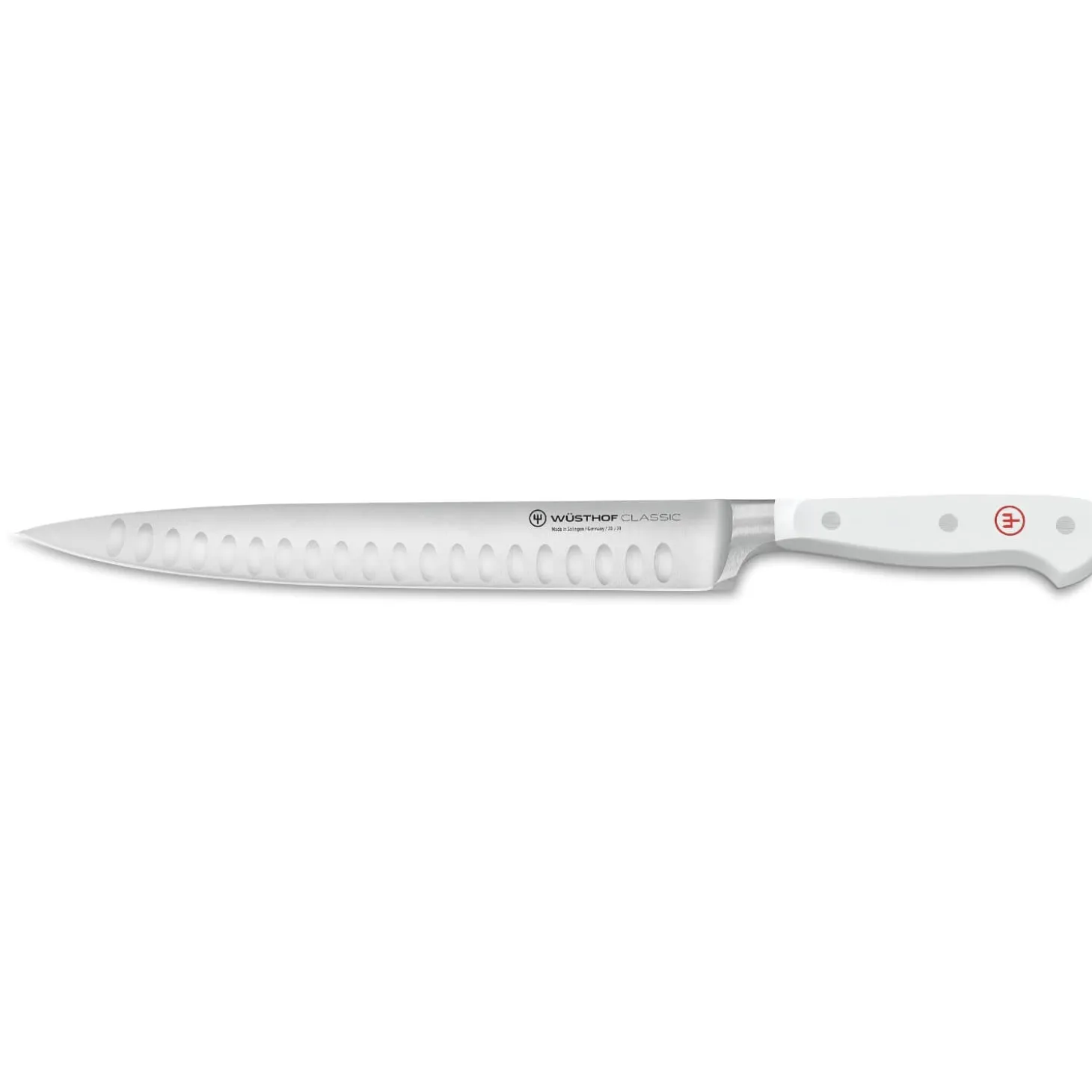 This 23cm Carving Knife forms part of the latest Wusthof Classic White range of kitchen knives. Each blade in the Classic range has been created using a single billet of X50 Cr MoV 15 stainless steel which features a unique composition offering exceptional strength and sharpness. With a full tang and three-rivet handle, each blade is expertly balanced to provide the very best experience.