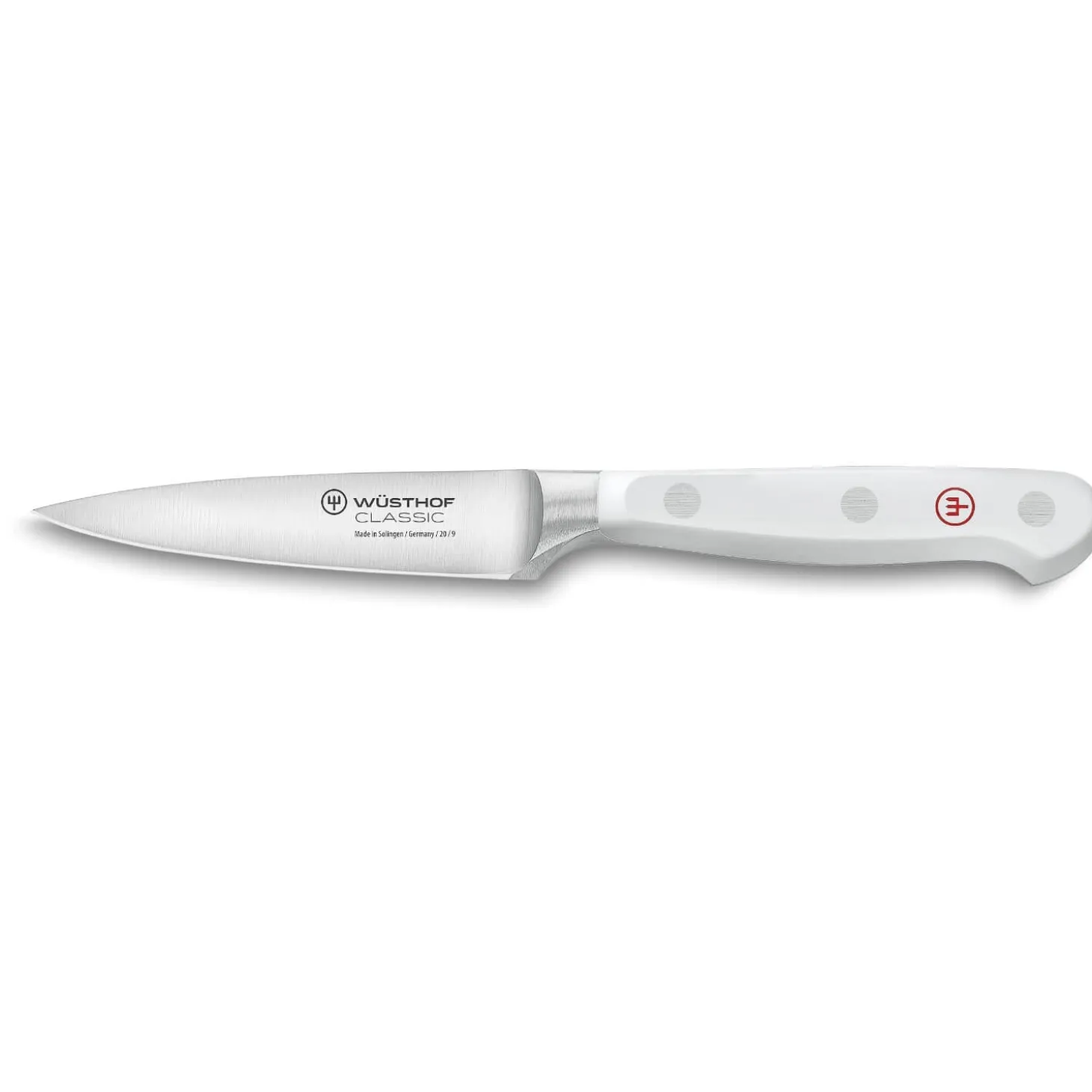 This 9cm Paring Knife forms part of the latest Wusthof Classic White range of kitchen knives. Each blade in the Classic range has been created using a single billet of X50 Cr MoV 15 stainless steel which features a unique composition offering exceptional strength and sharpness. With a full tang and three-rivet handle, each blade is expertly balanced to provide the very best experience.
